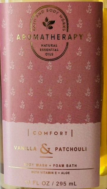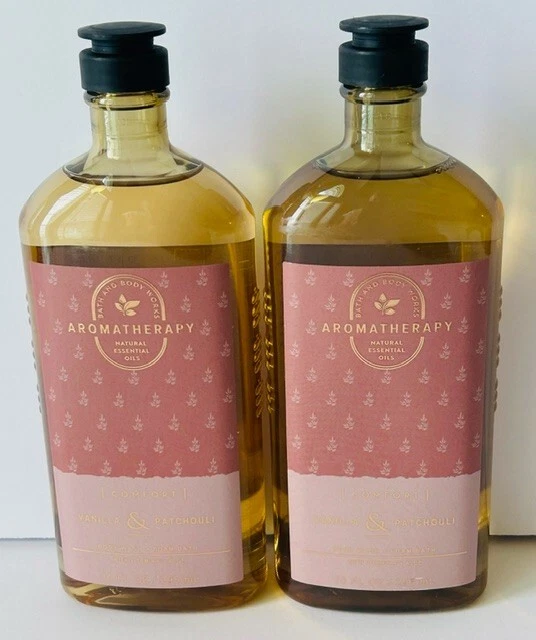 Set of 2 NEW Bath and Body Works Aromatherapy Vanilla and Patchouli Body Wash Gently cleanses without drying. Leaves skins feeling clean and refreshed. Feel comfort with the aroma of relaxing vanilla and harmonious patchouli.