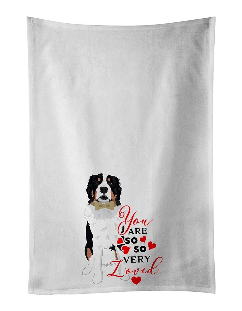 Thank you for visiting our Doggie Themed Kitchen Towel Listing. We now have over 300 breeds featured on beautiful, practical, and high-quality items. To view all of the items featuring your favorite breeds, click on the above Sellers Other Item' link above and then type in your favorite breed. Free Shipping. Highlights 100% Cotton Construction: Our Decorative White Kitchen Towel Set is made entirely of cotton, ensuring superior absorbency and durability. Each towel measures 19x28 inches, ideal for any kitchen task. Artistic Design: Featuring beautiful, full-color artwork from our talented artists, these towels transform a functional kitchen necessity into an appealing piece of decor. Versatile Use: This set of two towels is perfect for drying dishes, wiping up spills, or simply adding a touch of elegance to your kitchen. They effortlessly blend utility with style. Easy to Care For: These dish towels are machine washable in cold water and can be dried on low heat. For preserving the vibrant design, use a pressing cloth when ironing and avoid using bleach on the decorated towel. A perfect blend of aesthetics and practicality for your kitchen. Bernese Mountain Dog gifts,Bernese Mountain Dog collectibles, Valentine's Day gifts and collectibles Specification Brand:Caroline's Treasures Details Kitchen Towel Set of 2 featuring breed specific Bernese Mountain Dog artwork. Celebrate Valentine's Day with this Valentine's Day Kitchen Cotton Towels. This Kitchen Towel Set of 2 is from Caroline's Treasures collection You are so so very loved. Spruce up your kitchen decor with Caroline's Treasures Decorative White Kitchen Towel Set. This set of two dish towels showcases beautiful artwork from one of our talented artists, making them both practical and visually appealing. These towels are crafted from 100% cotton, offering excellent absorbency and durability, making them ideal for any kitchen task. Each white towel measures 19 inches by 28 inches, providing ample coverage for drying dishes or wiping up spills. The standout feature of these towels is the full-color artwork design printed on each one. They can serve as a vibrant accent in your kitchen, turning a functional item into a delightful piece of decor. When it comes to care, these towels are machine washable in cold water and can be dried on low heat. Remember to always use a pressing cloth when pressing the design, and avoid using bleach on the decorated towel. The Decorative White Kitchen Towel Set makes a great gift or a stylish addition to your own kitchen.