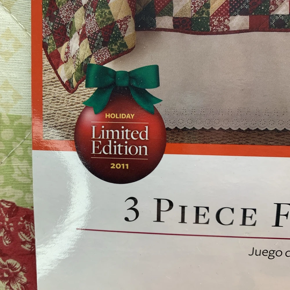 Limited Edition 2011 Holiday Set. 1 Full/Queen quilt size 86X86 and 2 pillow shams size 20X26. Starburst pattern in Christmas colors of red and green. Still in original packaging. See photos. Offers happily considered! Thanks for looking in Granny's Shop!