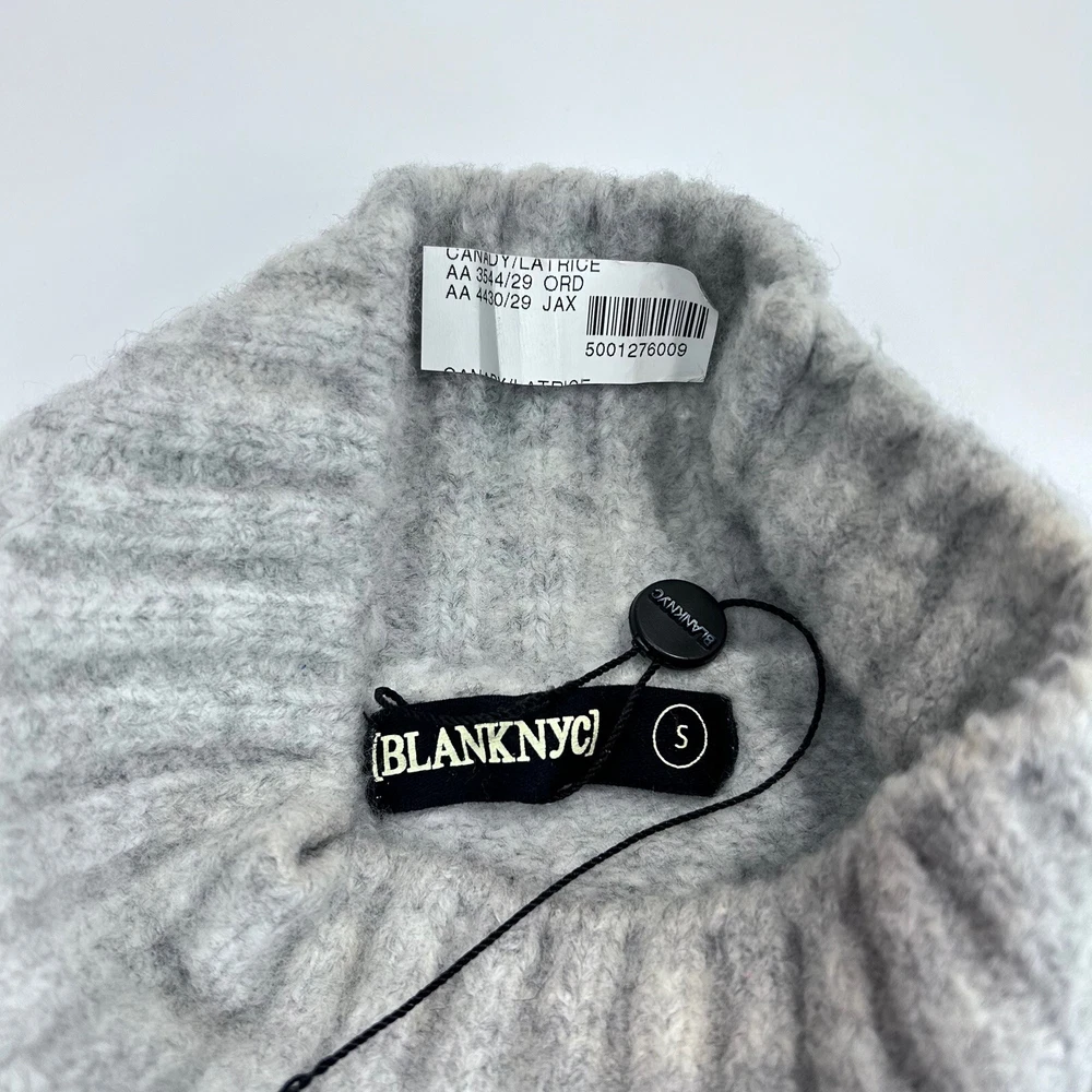 NWOT BlankNYC Blank NYC Small Tie Back Mock Neck Gray Wool Blend Sweater. All measurements are photographed, so please check the photos to see sizes! Purchase with confidence! I stand by every one of my products, and if you aren't satisfied in any way, please reach out and we will do whatever it takes to make it right. Follow my store for new listings! I sell on-trend, name-brand clothing at a deep discount. Sit back, relax, and browse my store! Please note that measurements are taken laying flat Tops and Dress measurements: Length - Top of the shoulder hem to lower hem Chest - From pit to pit
