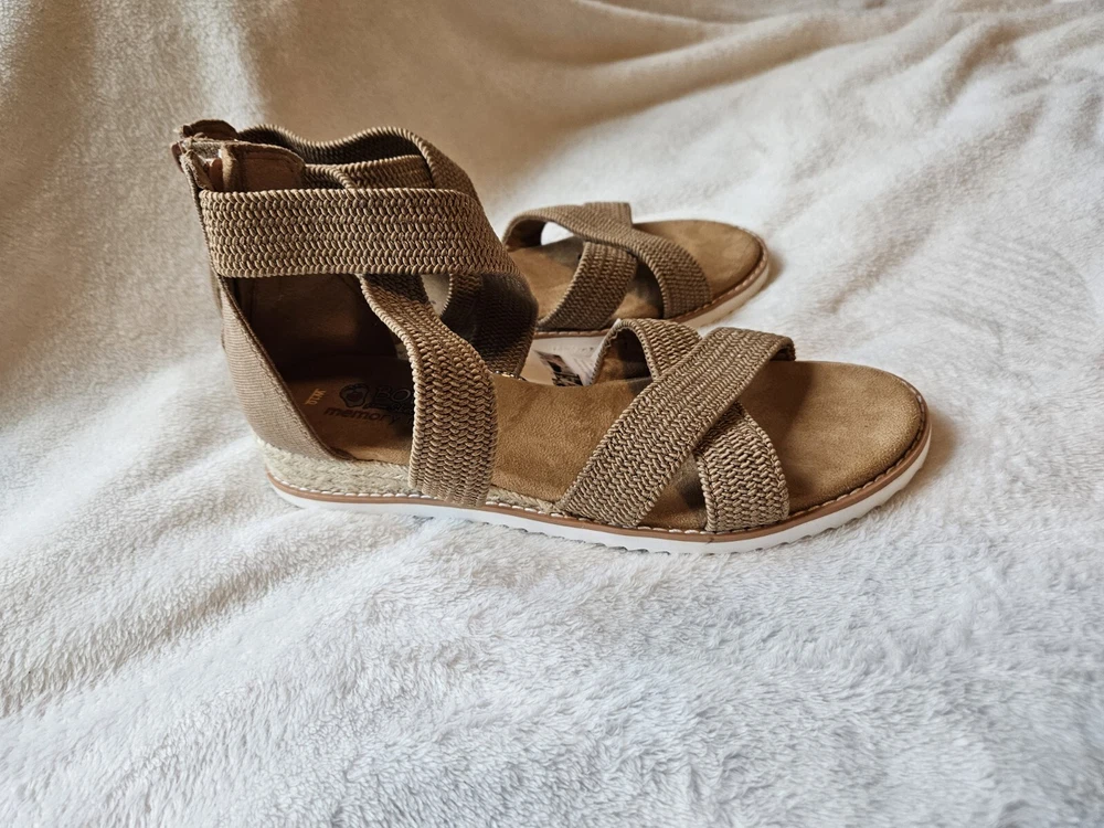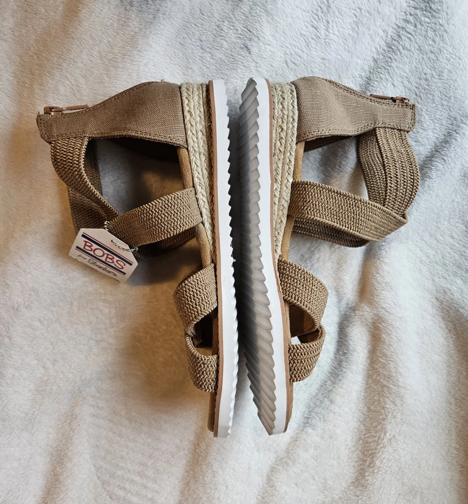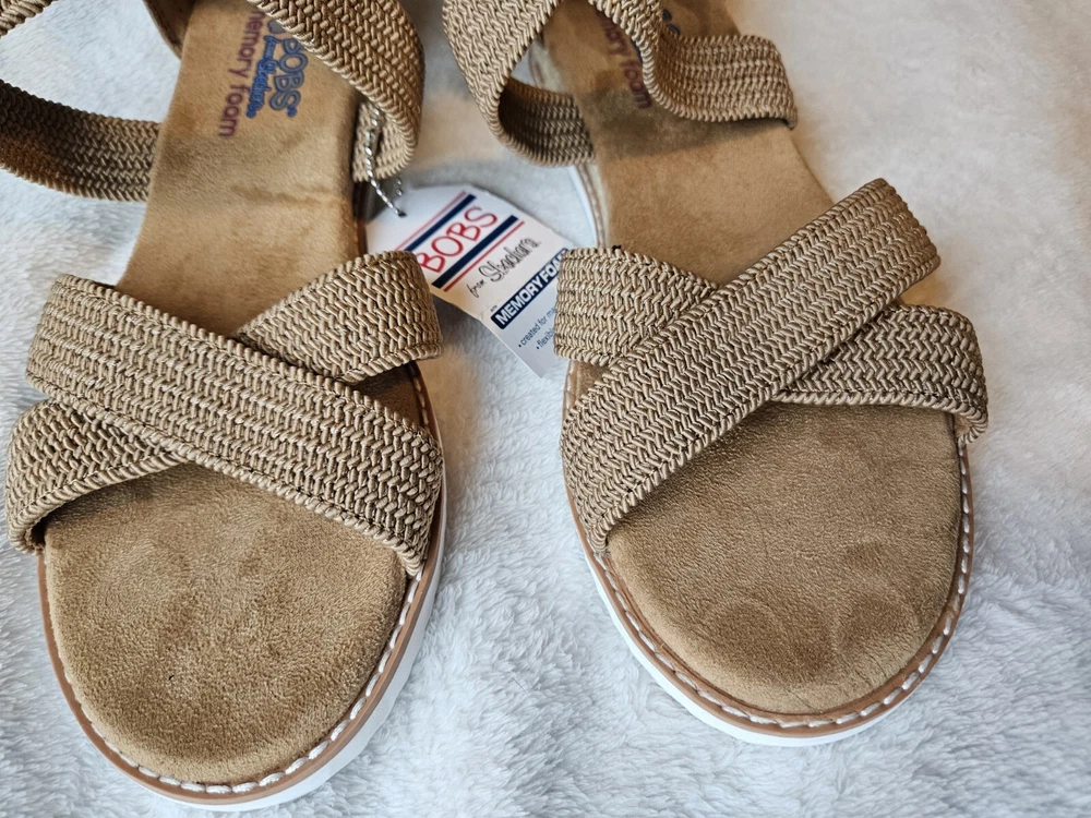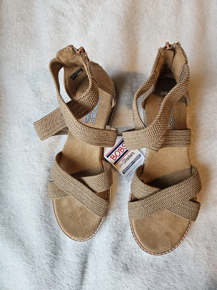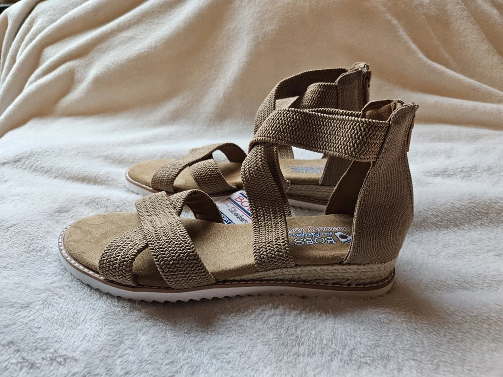 NEW Bobs Strappy Memory Foam Zip Ankle Sandals For Sketchers Women’s Size 10