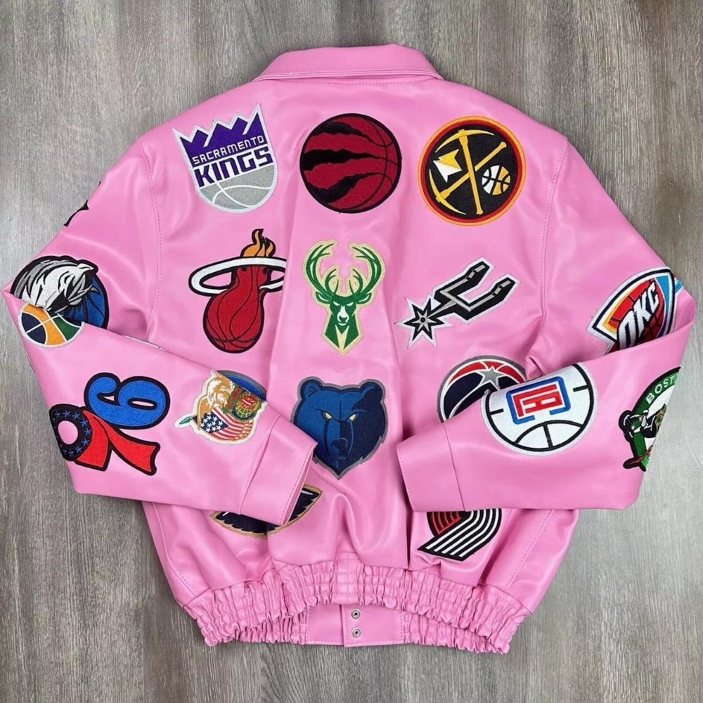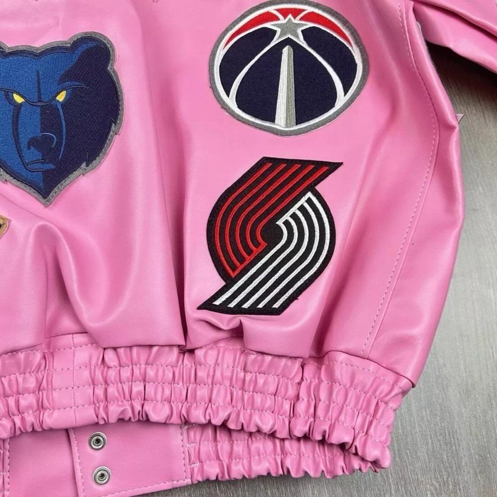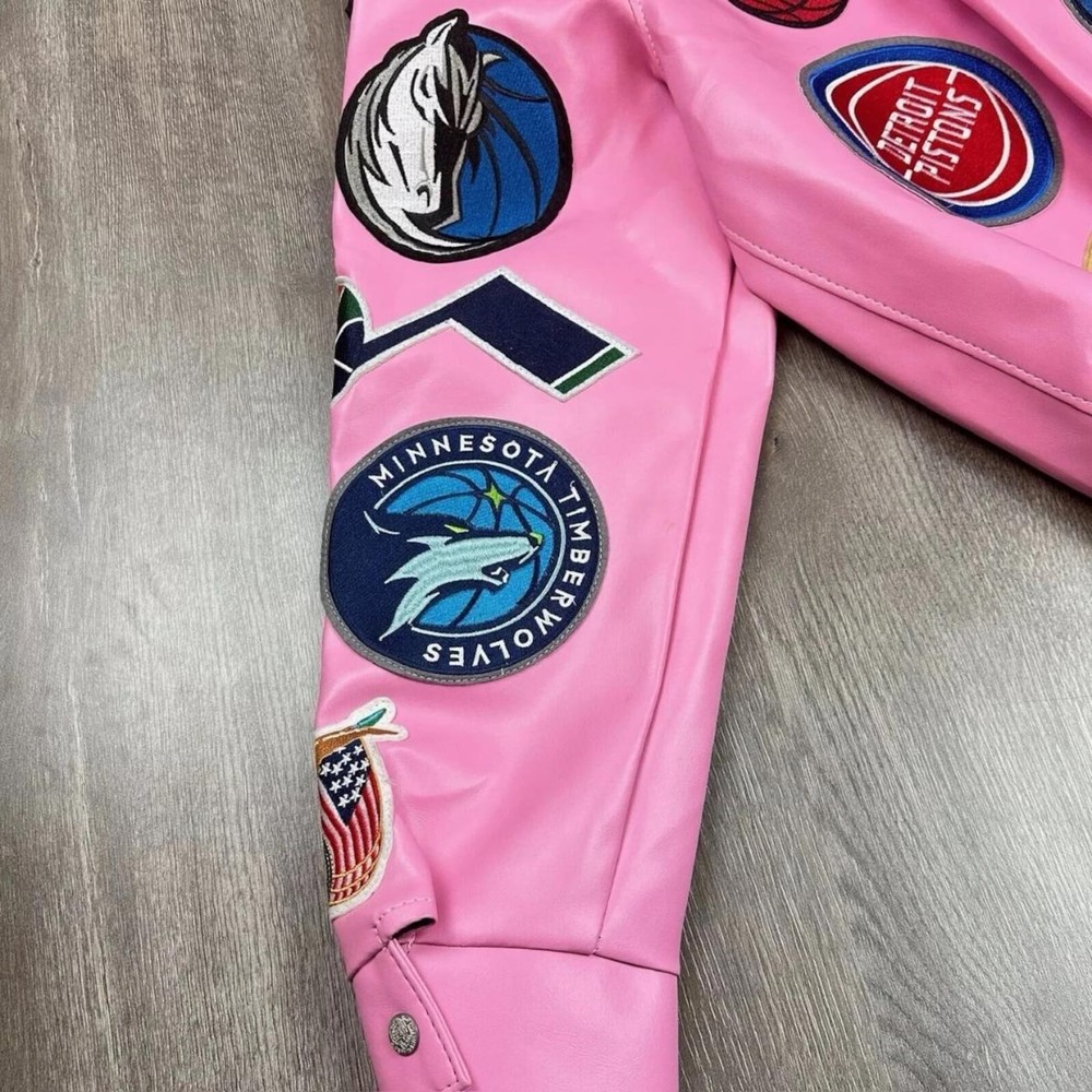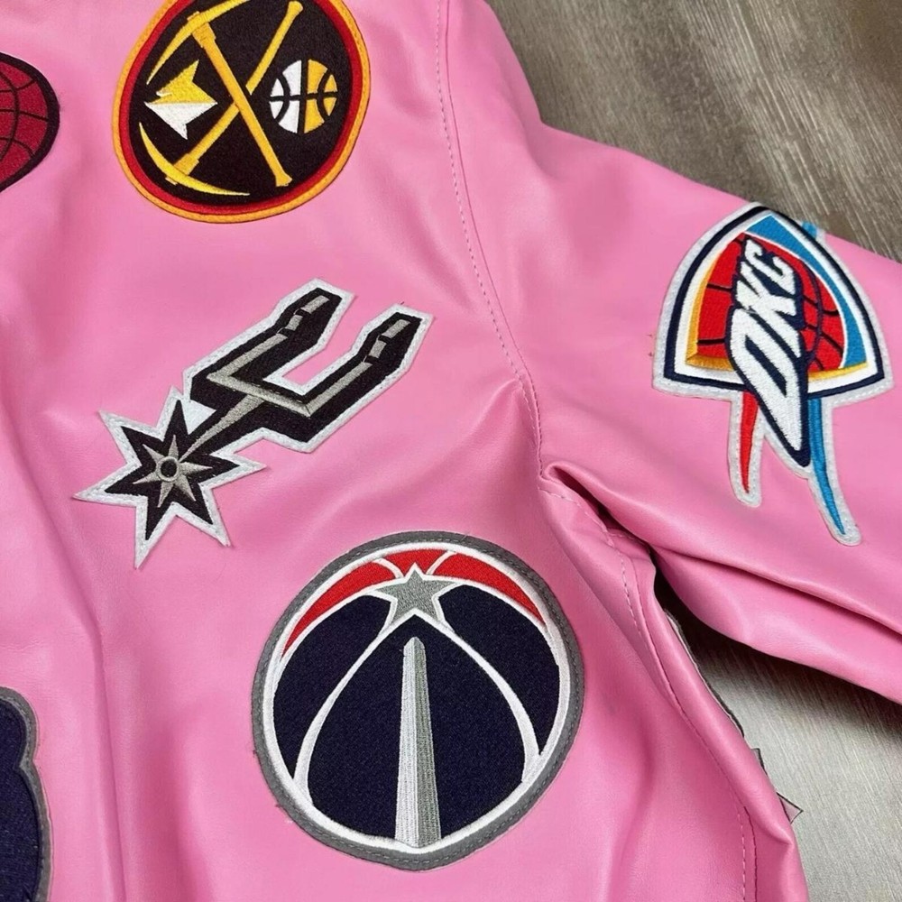 Comes as Pictured. This NEW Genuine Cowhide Leather Varsity Jacket is a stylish and versatile outerwear option for men. The jacket features a snap closure, polyester lining and insulation, and a mid-length cut, making it suitable for all seasons. The pink color and logo accents add a unique touch to the design, while the XXS to 5XL size range ensures a comfortable fit for various body types. Handcrafted in Pakistan, this jacket is perfect for outdoor activities like riding, walking, and cycling, adding a touch of adventure to your wardrobe.