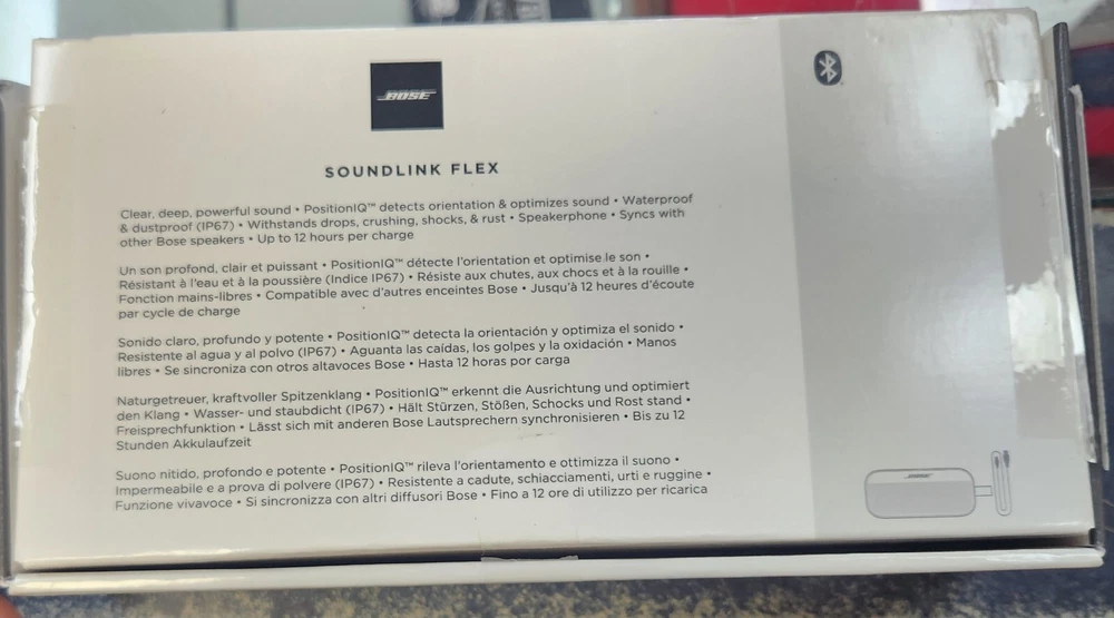 All have the same logo on it Introducing the Bose SoundLink Flex Bluetooth Portable Speaker in Black! This versatile speaker is compatible with any brand and features a sleek design made of silicone, metal, and fabric. With its waterproof capabilities, you can enjoy your favorite tunes by the pool or at the beach without worry. The Bose SoundLink Flex also boasts Bluetooth and USB-C connectivity, making it easy to connect to your device and start playing your music library. Its universal compatibility ensures that it will work with a variety of devices and models. This portable speaker is perfect for on-the-go entertainment or as a stylish addition to your home decor.