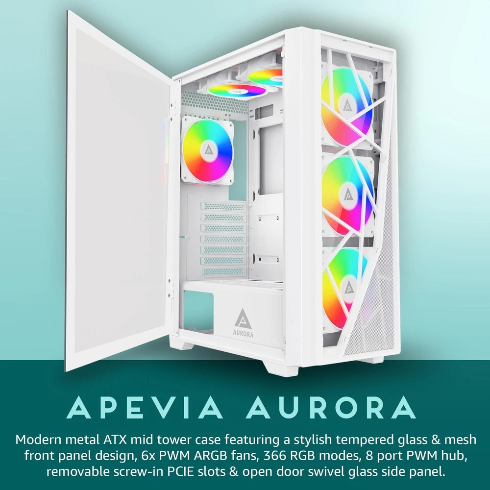 Life time toll free support 30 day money back guarantee Free shipping Product * Monitor sold separately Custom System Configuration Cases APEVIA Aurora White Tempered Glass RGB w/ 6 Cosmos PWM Fans Intel i3/i5/i7 CPU Fans FAN FOR INTEL LGA1700 12th, 13th GEN i3/i5/i7 COPPER CORE RM1 Intel 12th ,13th & 14th Gen CPUs Intel Core i3-14100 Core i3 14th Gen Raptor Lake 3.5 GHz (4.7GHz Turbo) Intel LGA1700 (14th,13th, 12th Gen) DDR4 Motherboards MSI PRO H610M-G DDR4, Dual M.2, PCIe 4.0,USB 3.2, GB LAN DDR4 System Memory MEMORY DDR4 8GB (1x8GB) PC4-25600/3200MHz Video Cards (GPU) AMD Radeon RX 6500 XT 4GB PCI Express 4.0, up to 2 monitors, HDMI+display port m.2 NVMe SSD Drives 512GB m.2 Solid State Drive, NVMe PCI-Express Sound Cards Realtek HD Digital Audio (Onboard) Network & WiFi Adapters Ethernet network adapter 10/100/1000 (onboard) Keyboards Black Windows Keyboard, 104 key Mice Optical Wheel Mouse Power Supplies ATX Thermaltake 500W ultra quiet ATX Power Supply (6+2pin)x2 Operating Systems Microsoft Windows 11 Home 64-Bit Edition (configured w/drivers and updates) $923.00 * This is custom PC configuration build using our system configurator tool. To insure order accuracy please review system configuration before ordering. System Configurator More info Cases APEVIA Aurora White Tempered Glass RGB w/ 6 Cosmos PWM Fans Additional Information Date First Available March 19, 2024 More info Case Fans NONE SELECTED More info Intel i3/i5/i7 CPU Fans FAN FOR INTEL LGA1700 12th, 13th GEN i3/i5/i7 COPPER CORE RM1 Model Brand Intel Series Lamina Model RM1 Details Type Fan & Heatsinks Additional Information Date First Available February 07, 2022 More info Intel 12th ,13th & 14th Gen CPUs Intel Core i3-14100 Core i3 14th Gen Raptor Lake 3.5 GHz (4.7GHz Turbo) Model Brand Intel Processors Type Desktop Series Core i3 14th Gen Name Core i3-14100 Model BX8071514100 Details CPU Socket Type LGA 1700 Core Name Raptor Lake # of Cores 4-Core (4P+0E) # of Threads 8-Threads Operating Frequency Performance-core Base Frequency: 3.5 GHz Max Turbo Frequency Max Turbo Frequency: 4.7 GHzP-core Max Turbo Frequency: 4.7 GHz L2 Cache 5MB L3 Cache 12MB Manufacturing Tech Intel 7 64-Bit Support Yes Hyper-Threading Support Yes Memory Types DDR4 3200 / DDR5 4800 Memory Channel 2 Max Memory Size 192 GB Max Memory Bandwidth 76.8 GB/s Virtualization Technology Support Yes Integrated Graphics Intel UHD Graphics 730 Graphics Max Dynamic Frequency 1.5 GHz Scalability 1S Only PCI Express Revision 5.0 / 4.0 PCI Express Configurations Up to 1x16+4, 2x8+4 Max Number of PCI Express Lanes 20 Thermal Design Power 60W Max Turbo Power 110W Cooling Device Intel Laminar RM1 included Compatible Desktop Chipsets Intel H610 / Intel H670 / Intel B660 / Intel Q670 / Intel W680 / Intel Z690 / Intel H770 / Intel B760 / Intel Z790* BIOS update may be required when used with some old chipset motherboard Operating System Supported Linux / Windows 10 (22H2, 21H2) / Windows 11 (22H2, 21H2) Additional Information Date First Available January 08, 2024 More info Intel LGA1700 (14th,13th, 12th Gen) DDR4 Motherboards MSI PRO H610M-G DDR4, Dual M.2, PCIe 4.0,USB 3.2, GB LAN Model Brand MSI Model PRO H610M-G DDR4 Supported CPU CPU Socket Type LGA 1700* Dedicated LGA1700 mounting bracket is required. CPU Type Supports 13th / 12th Gen Intel Core, Pentium Gold, Celeron Processors Chipsets Chipset Intel H610 Onboard Video Onboard Video Chipset Supported only by CPU with integrated graphic Memory Number of Memory Slots 2x288pin (DDR4) Memory Standard DDR4 3200 Maximum Memory Supported 64GB Channel Supported Dual Channel Expansion Slots PCI Express 4.0 x16 1 x PCI Express 4.0 x16 PCI Express x1 1 x PCI Express 3.0 x1 Storage Devices SATA 6Gb/s 4 x SATA 6Gb/s M.2 1 x M.2 Gen3 x4 32 Gbps slot Onboard Audio Audio Chipset Realtek ALC897 Audio Channels 7.1 Channels Onboard LAN LAN Chipset Intel I219-V Max LAN Speed 10/100/1000Mbps Rear Panel Ports Back I/O Ports 1 x DisplayPort1 x D-Sub1 x HDMI1 x LAN (RJ45)3 x Audio Jacks1 x PS/2 Keyboard/Mouse Combo2 x USB 3.2 Gen 1 Type-A4 x USB 2.0/1.1 Physical Spec Form Factor Micro ATX LED Lighting RGB Windows Compatibility Windows 11 Supported Additional Information Date First Available March 31, 2022 More info DDR4 System Memory MEMORY DDR4 8GB (1x8GB) PC4-25600/3200MHz Model Brand n/a Series DDR4 hihg Speed Model CT2A3000C16 Details Capacity 8GB (1 x 8GB) Type 288-Pin DDR4 SDRAM Speed DDR4 3200 (PC4 25600) CAS Latency 16 Timing 16-18-18-35 Voltage 1.2V ECC No Buffered/Registered Unbuffered Color Black Heat Spreader optional( not included) Features Designed for high-performance overclocking Each module with eight-layer PCB helps manage heat and provides superior overclocking headroom. Each IC is individually screened for performance potential. Designed for great looks Available in multiple colors to match your motherboard, your components, or just your style. Performance and Compatibility RAM is optimized and compatibility tested for the latest Intel and AMD Series motherboards and offers higher frequencies, greater bandwidth, and lower power consumption. XMP 2.0 support for trouble-free automatic overclocking. Low-profile design The RAM module height is carefully designed to fit smaller spaces. Recommend Use High Performance or Gaming Memory Fan Included No More info Video Cards (GPU) AMD Radeon RX 6500 XT 4GB PCI Express 4.0, up to 2 monitors, HDMI+display port Model Brand PowerColo Model AXRX 6500XT 4GBD6-DH Interface Interface PCI Express 4.0 Chipset Chipset Manufacturer AMD GPU Series AMD Radeon RX 6000 Series GPU Radeon RX 6500 XT Architechture RDNA 2 Game Clock 2610 MHz Boost Clock 2815 MHz Stream Processors 1024 Stream Processors Memory Effective Memory Clock 18.0 Gbps Memory Size 4GB Memory Interface 64-Bit Memory Type GDDR6 3D API DirectX DirectX 12 Ultimate OpenGL OpenGL 4.6 Ports HDMI 1 x HDMI 2.1 DisplayPort 1 x DisplayPort 1.4 Details Cooler Single Fan Recommended PSU Wattage 400W Power Connector 6-Pin Form Factor & Di