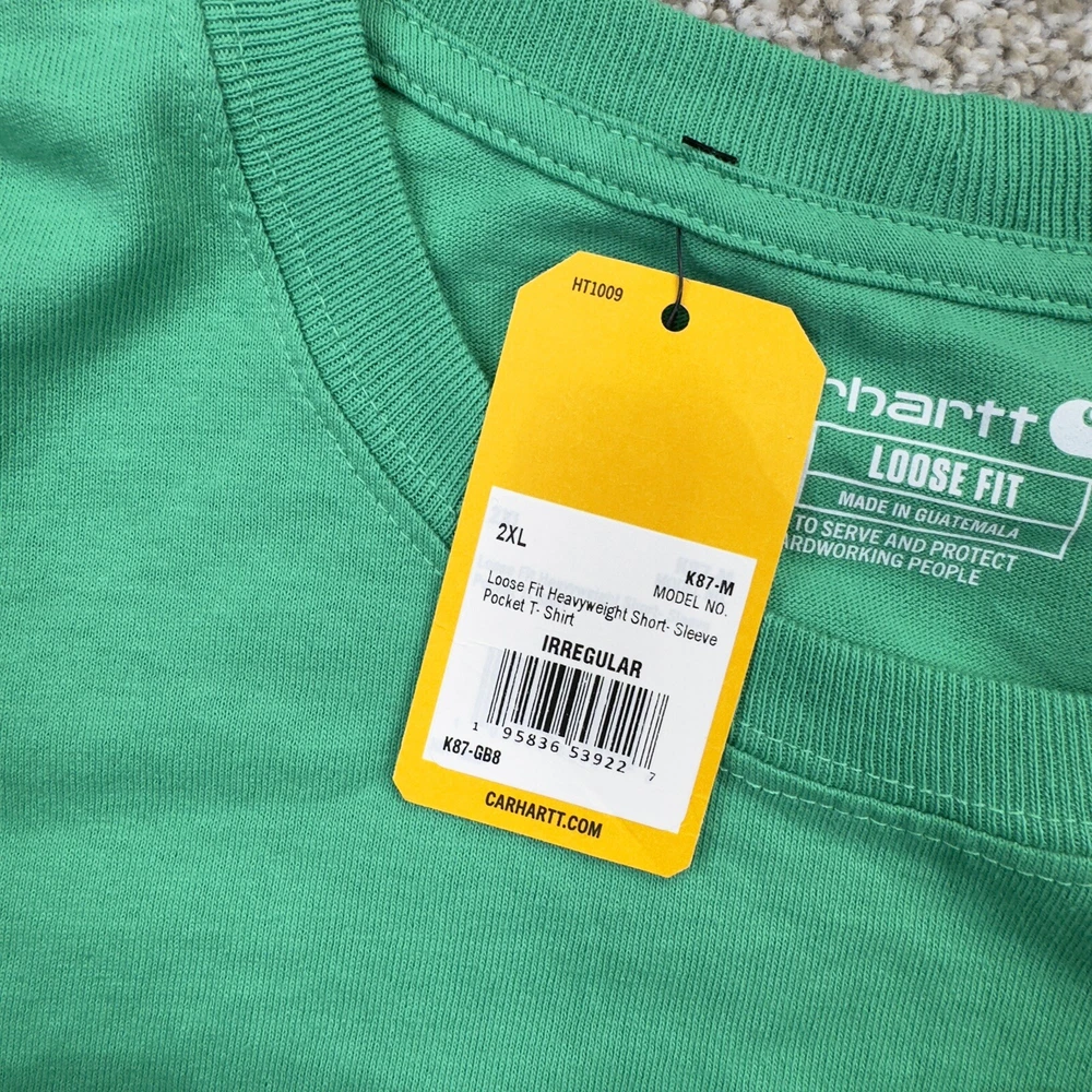 NEW Carhartt Loose Fit Size 2XL Mens Workwear T Shirt Pocket Short Sleeve Green Tee. Condition is New with Defect IRREGULAR. Shipped Standard. See Photos With Measurements And Blemish.
