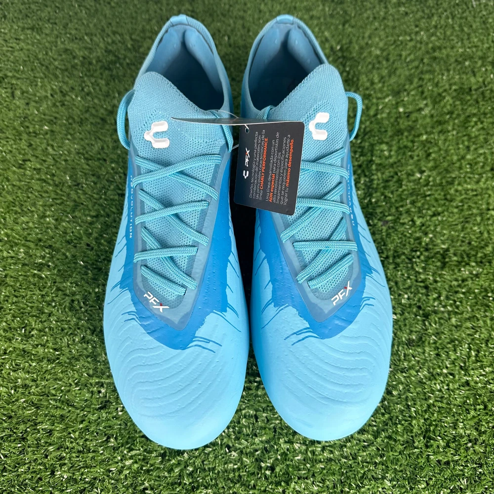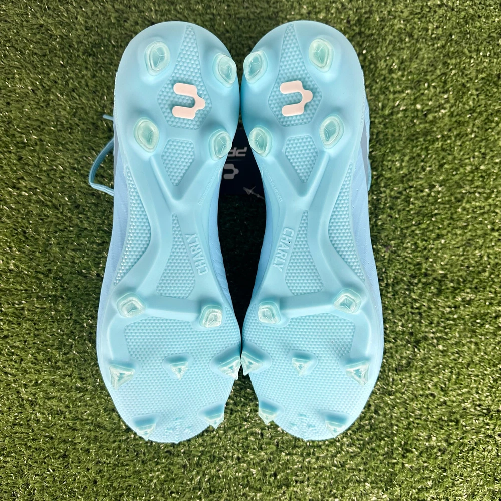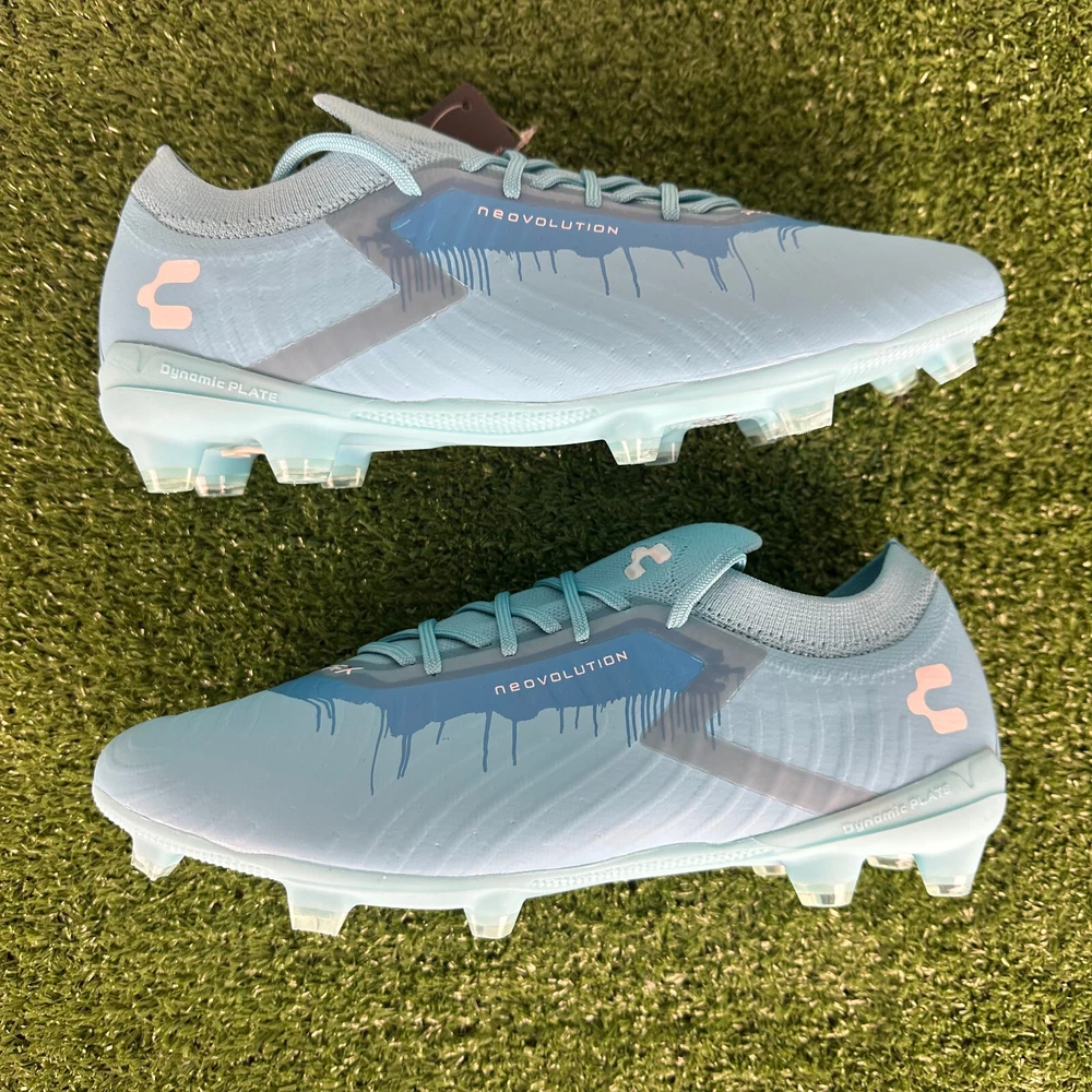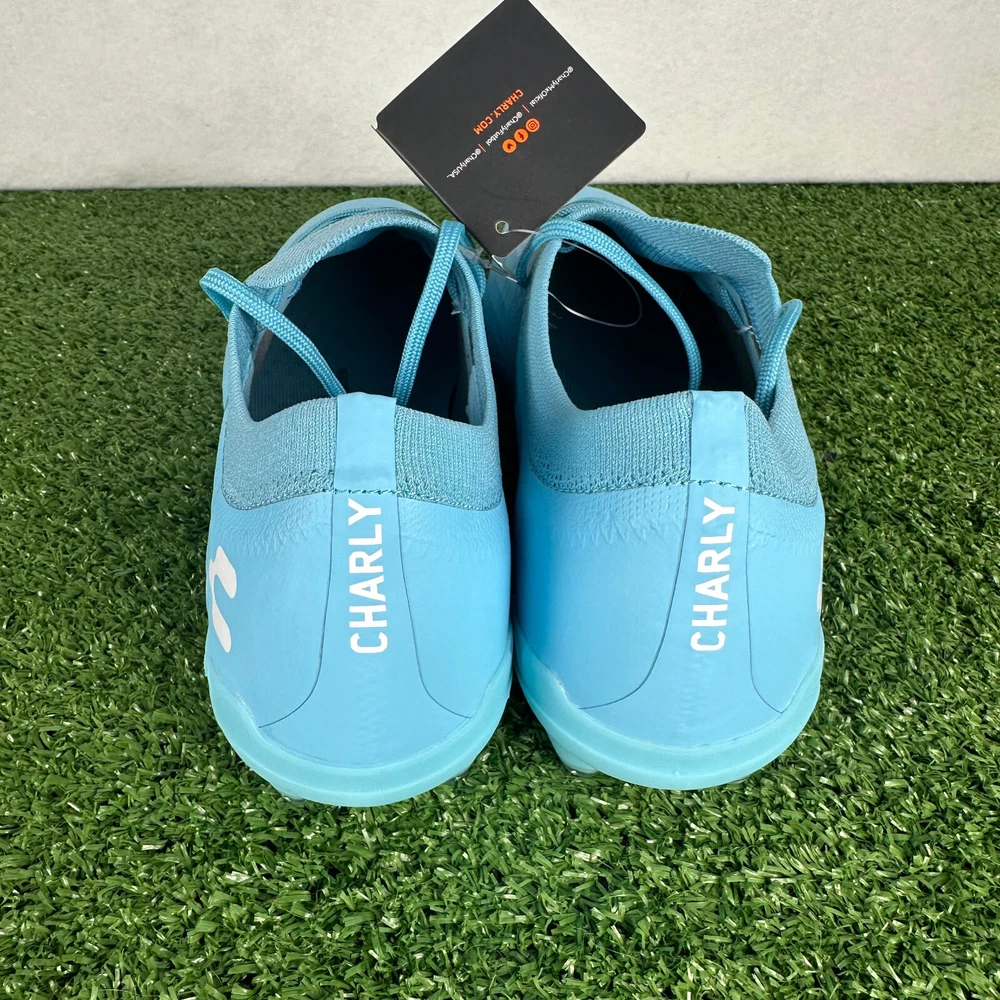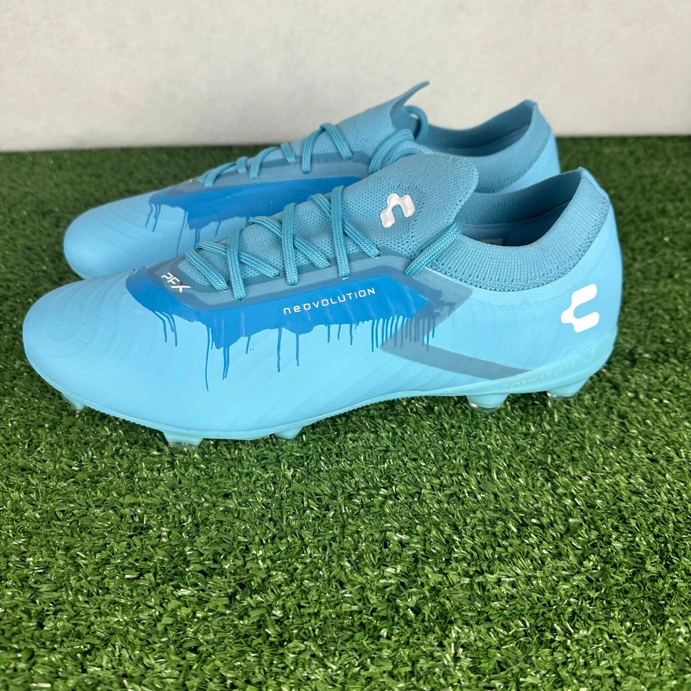 Elevate your soccer game with these stylish Charly Neovolution PFX Cleats in Sky Blue. Designed for maximum performance, these cleats feature a medium width fit for comfort and control. The blue colorway adds a pop of style to your look, while the Neovolution technology ensures you stay ahead of the competition. Perfect for any soccer player looking to up their game, these cleats are a must-have for any soccer enthusiast.