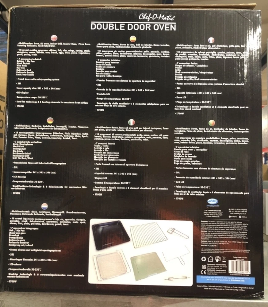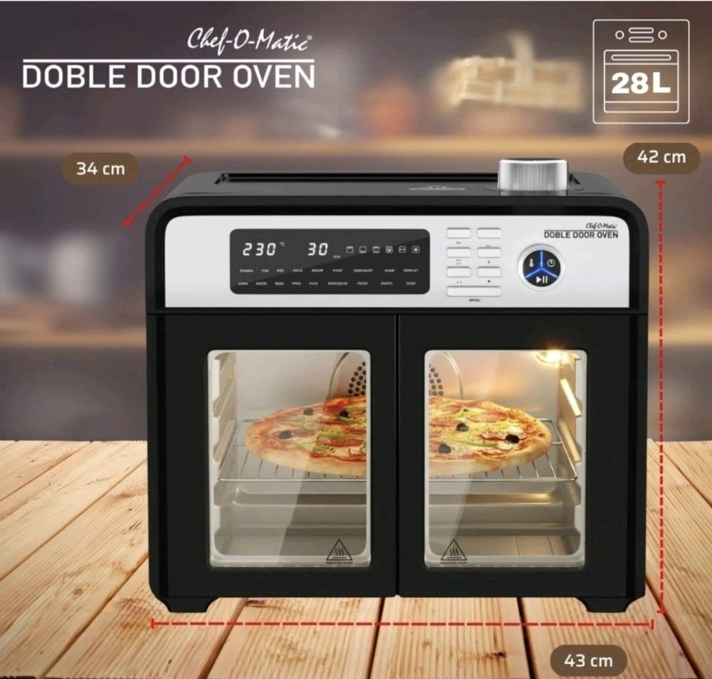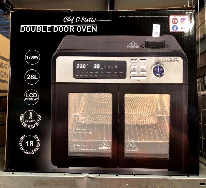 NEW Chef-O-Matic Double Door Oven 28L Air Fryer with 8 Presets & Rotisserie-USED