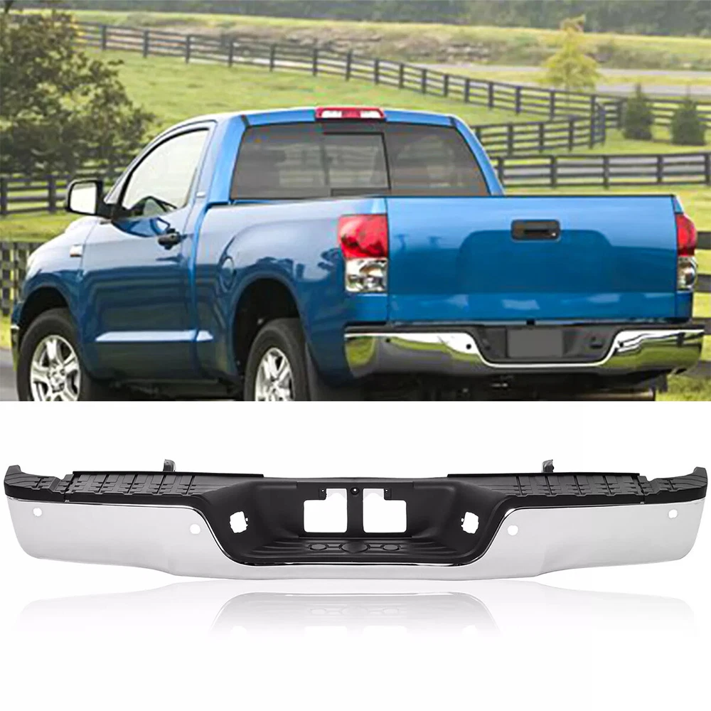 Fitment: For 2010,2013 Toyota Tundra Platinum For 2007-2011,2013 Toyota Tundra SR5 For 2007-2013 Toyota Tundra (submodel: Base, Limited) For Models With Park Assist Item Specifications: Color: Chorme Material: Carbon Steel Type: Bumper Assembly Placement on Vehicle: Rear Fitment Type: Direct Replacement Package Include: 1* Step Bumper W/o Product Instruction; On Jan 5, 2025 at 02:47:10 PST, seller added the following information: On Jan 5, 2025 at 11:06:14 PST, seller added the following information: