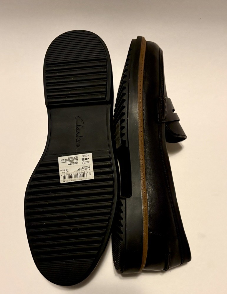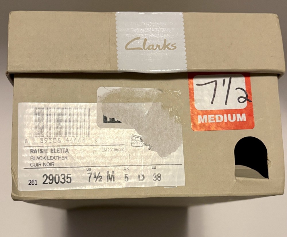 Clarks Collection Raisie Eletta Women’s Loafers Size US 7.5 Medium Black Leather Brand New in Box Brand new, never worn Clarks Collection Raisie Eletta women’s loafers. Shoes are new in box and in unworn condition. Women’s size US 7.5 Medium Color: Black Material: Leather Style: Raisie Eletta Line: Clarks Collection with Cushion Plus footbed Classic black leather loafers with a low-profile sole and cushioned insole, suitable for work, travel, or everyday wear. Please note: the original Clarks box has a retail size/price sticker on the side and shows typical label wear, all clearly visible in the photos. You will receive the exact pair of shoes and the exact box shown in the listing photos. Nothing substituted. Ships carefully packed. Feel free to ask any questions before purchasing.