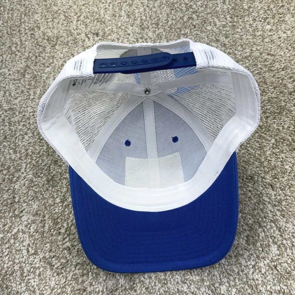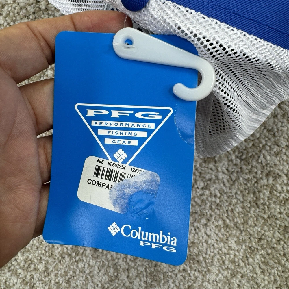 NEW Columbia PFG Trucker Hat Cap Mesh Fish USA Flag Adult Unisex 0/S Blue White. Condition is New with Tags. Shipped Standard. See All Photos With Blemish.