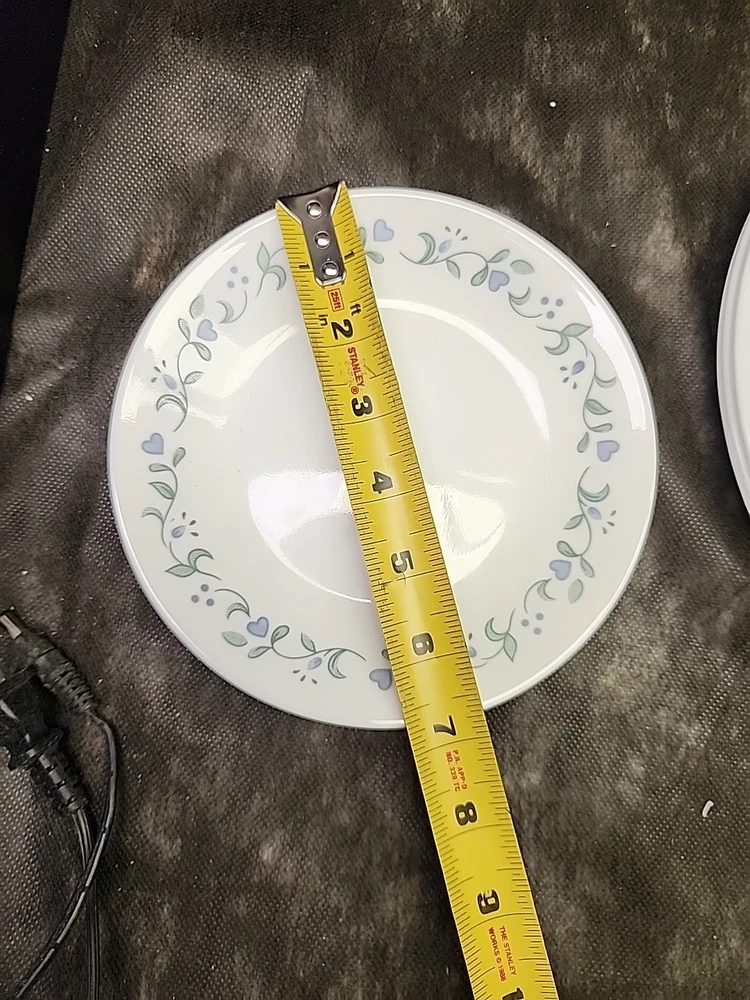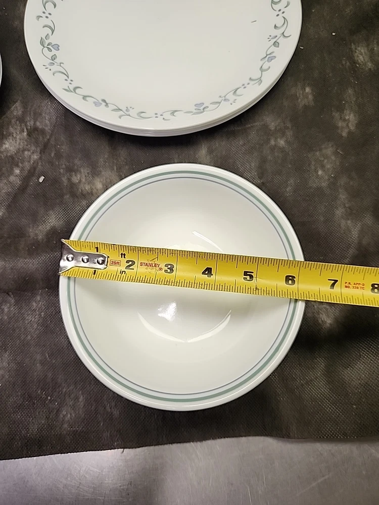 Material: Glass Set Includes: Dinner Plate Color: White, Blue Finish: Copper Type: Dinner Set Pattern: Solid Shape: Round gtin13: 0071160131705 Model: Corelle Country Cottage Theme: Food/Kitchen Style: Modern Brand: Corelle Plate Diameter: 2 in Features: Break/Chip Resistant, Microwave Safe, Dishwasher Safe, Oven-Safe Number of Place Settings: 12 MPN: 1141877 Number of Compartments: 4 Country of Origin: United States UPC: 0071160131705 Original/Reproduction: Original Character: Chip Occasion: All Occasions