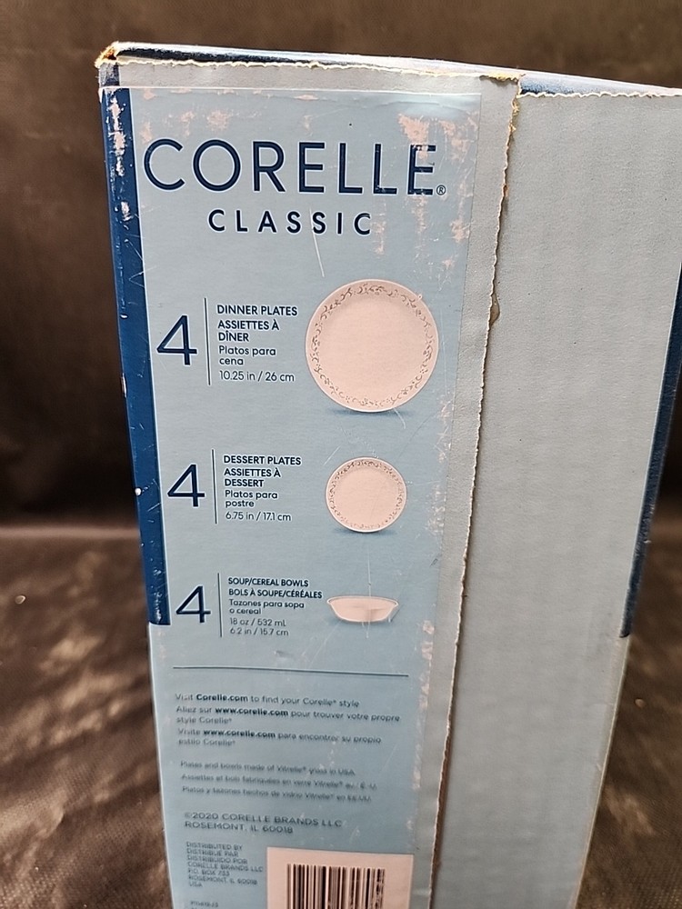 NEW Corelle Classic Dinnerware set Country Cottage 12pc set Vitrelle White Green