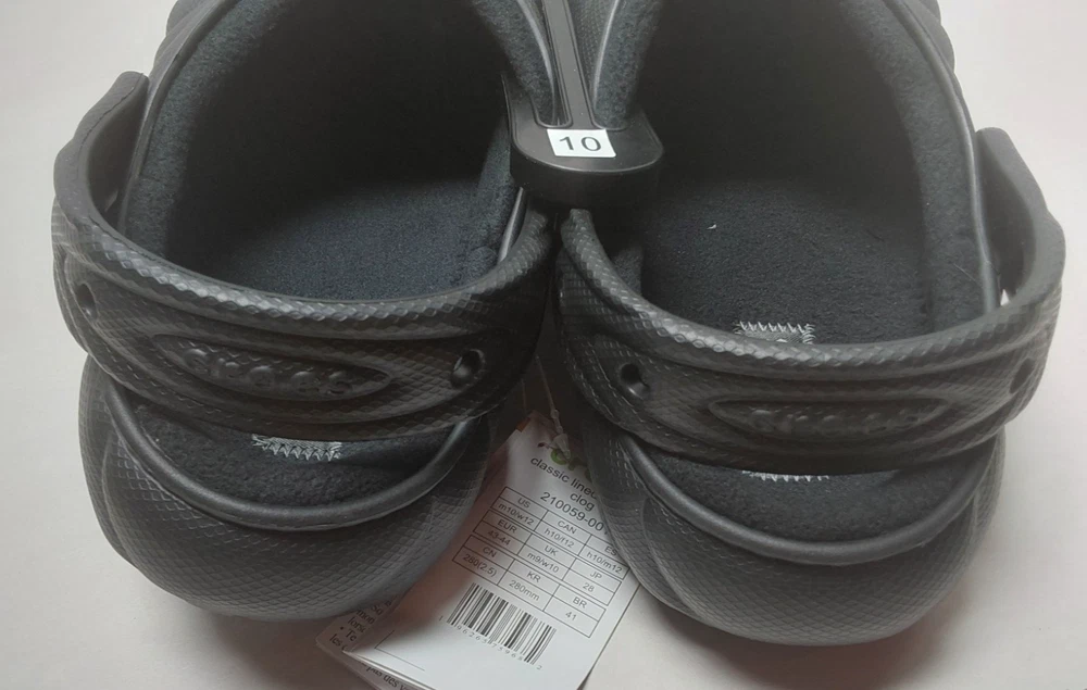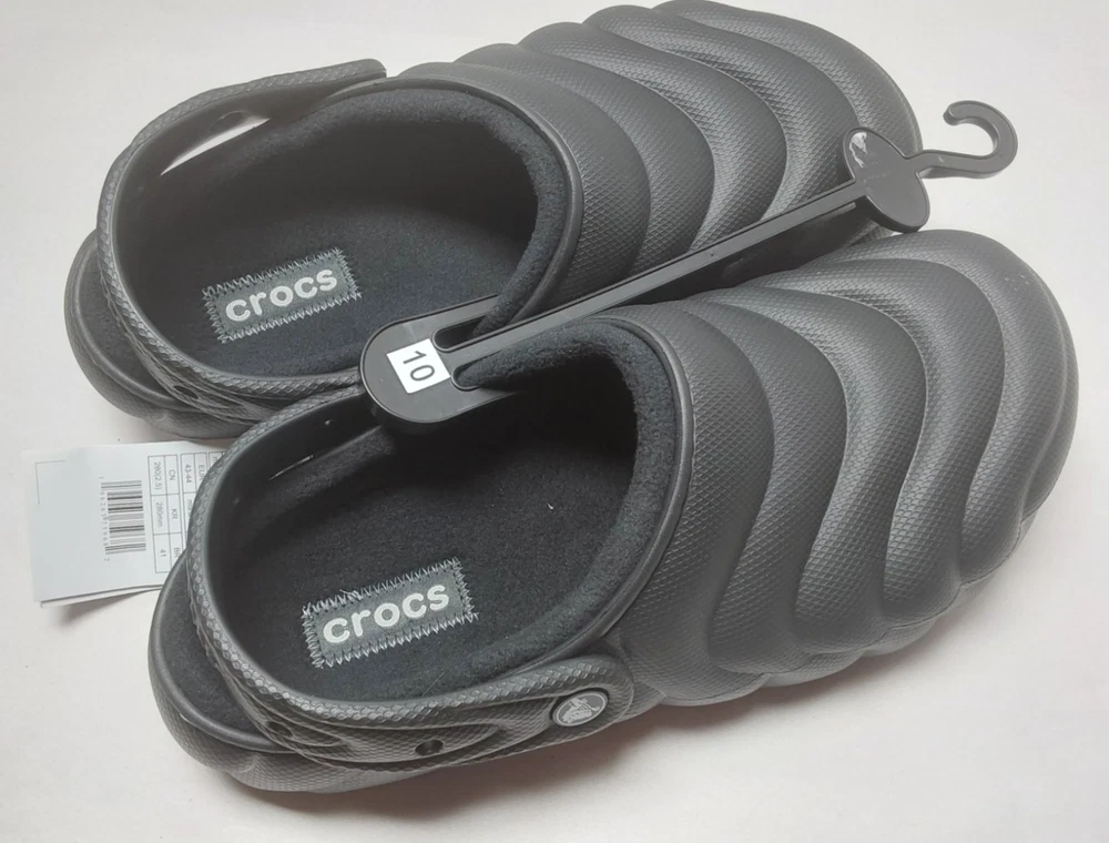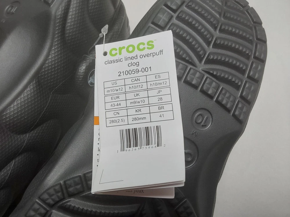 Occasion: Activewear, Casual, Travel, Workwear gtin13: 196265759682 MPN: 210059-001 Pattern: Solid Accents: Logo Lining Material: Synthetic Season: Fall, Spring, Summer, Winter US Shoe Size: M10/W12 Style: Clog UPC: 196265759682 Color: Black Upper Material: Synthetic Insole Material: Synthetic Customized: No Toe Shape: Round Toe Vintage: No Model: Crocs Classic Lined Overpuff Shoe Width: Standard EU Shoe Size: 43-44 Brand: Crocs UK Shoe Size: M9/W10 Outsole Material: Synthetic Department: Unisex Adults Type: Casual Features: Comfort, Lightweight, Lined Closure: Slip On