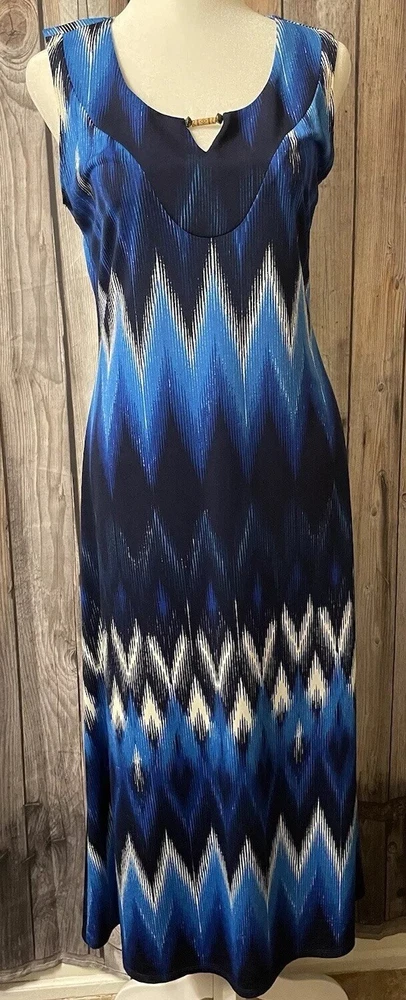 NEW DIRECTIONS * Blue & Black & White Designs Maxi Dress Women’s Size Small. Excellent condition. INV#FR00