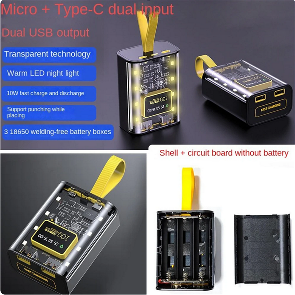 You may also like 12V LED 28cm Pre Wired LED Light Lamp Bulb For DIY Home Decoration Eight Colors 3.89 USD 3.68 USD Universal 12V 433MHz Electric Cloning Gate Garage Door Open Remote Control Fob 4.99 USD 3.68 USD 12V Mini Solenoid Electric Control Push-Pull Cabinet Drawer Door Electric Lock 4.89 USD 3.68 USD 10pcs Prank Funny Magic Trick Joke Special Lifelike Fake Cockroach Roach Toy 1.99 USD 3.68 USD 6pcs Guitar String Nails Solid Brass Bridge Pins Abalone Dot Inlay Acoustic d 10.99 USD Free shipping Replacement Treadmill Magnetic Sensor Speed Sensor for Running Machine Repairs 6.99 USD 3.68 USD Product Description NEW DIY Free Welding 3*18650 Battery Charger Power Bank Box Fast Charging Case Features: 1. Dual USB output, Micro+Type-C dual input, transparent shell full of technology, warm LED night light. 2. 10W fast charging and discharging, supporting both charging and discharging, 3 18650 batteries, solder free battery box. 3. High power output/compact and portable/intelligent digital display/two simultaneous charging/multi device compatibility. 4. Warm little night light, accompanying you at night, with adjustable brightness in 4 gears, full of warmth. 5. Large screen digital display, power visualization, and the ability to view the remaining power status anytime and anywhere. 6. Hanging rope design makes it more convenient to go out, easy to carry, very convenient. 7. Safe core layer by layer protection, high-quality components, low temperature fast charging without burning. Specifications: Input: 5V2A Output: 5V2A Battery Model: 18650 Flat Head Battery(Not included) The package includes: 1 * DIY Free Welding Power Bank Box Note: This product is a solderless mobile power supply kit (circuit board+shell) and is not a finished product of a mobile power supply. It does not include batteries, data cables, or box packaging. The battery needs to be purchased separately with a 18650 (flat head) battery before use. Please note that the battery capacity must be consistent. Do not place the battery upside down as it will damage the motherboard. (The spring is the positive pole, and the spring is the negative pole) Please place it correctly. There is no chance of secondary disassembly, and the shell cannot be disassembled again. Please fix it all at once! Shipping Contact Us We ship most of our orders within 24 hours, and may up to 48 hours from US Warehouse. In 2-5 working days, you will receive your items. Sometimes due to problems with our transportation company system, your shipping information may be delayed to update. We recommend that you try again after 3-4 days. If you still haven't checked the shipping information, you can contact us by ebay message. If you have any questions, our Customer Service staffs welcome you to email us. We strive to answer all questions and resolve any problems as quickly as possible. You can contact us 7*24, we will reply at the first time, and we will surely solve your problems. Note: 1.We try our best to reply to your emails as soon as possible, however, due to high volume of daily incoming emails and time zone difference, we may not be able to reply your emails immediately. Please allow 1 business days for us to response. If you do not receive any reply from us, please check your email ensuring your mailbox has not reached full size. 2.Due to some ISP SPAM filter settings, you may not be able to receive our replies; if you have problems receiving our emails, you may need to use a different email account to contact us. 3.Please give us the opportunity to resolve any problem. We understand the concerns and frustrations you might have, and will try our best to resolve the issues. Please email us before leaving any negative feedback or open any dispute on PayPal. 4.We care about our valued customers, and will always try to help you. So if you have any problems, please e-mail us immediately. Shipping We ship most of our orders within 24 hours, and may up to 48 hours from US Warehouse. In 2-5 working days, you will receive your items. Sometimes due to problems with our transportation company system, your shipping information may be delayed to update. We recommend that you try again after 3-4 days. If you still haven't checked the shipping information, you can contact us by ebay message. Contact Us If you have any questions, our Customer Service staffs welcome you to email us. We strive to answer all questions and resolve any problems as quickly as possible. You can contact us 7*24, we will reply at the first time, and we will surely solve your problems. Note: 1.We try our best to reply to your emails as soon as possible, however, due to high volume of daily incoming emails and time zone difference, we may not be able to reply your emails immediately. Please allow 1 business days for us to response. If you do not receive any reply from us, please check your email ensuring your mailbox has not reached full size. 2.Due to some ISP SPAM filter settings, you may not be able to receive our replies; if you have problems receiving our emails, you may need to use a different email account to contact us. 3.Please give us the opportunity to resolve any problem. We understand the concerns and frustrations you might have, and will try our best to resolve the issues. Please email us before leaving any negative feedback or open any dispute on PayPal. 4.We care about our valued customers, and will always try to help you. So if you have any problems, please e-mail us immediately. powered by 37mm New Watch Dial With Watch Hands Parts For ETA 6497 ST3600 Movement Watch a 16.99 USD Free shipping Computer Keyboard Clicker Auto Random Click Game Assistance Hang Up Artifact l 22.69 USD Free shipping 60pcs Dial Feet Stickers Watch Movement Repairment Spare Parts Watchmaker Tool g 20.99 USD Free shipping New Key Board Rocker Button Flex Cable for Canon EOS 5D Mark III / 5D3 Repair 12.99 USD Free shipping 1:400 16cm A380 Philippine Airlines Plane Metal Airplane Alloy Plane Model s 12.