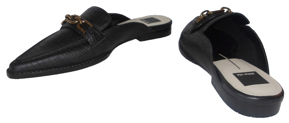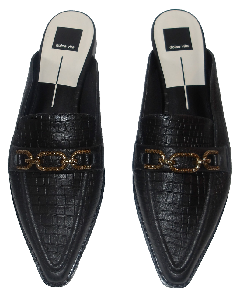 NEW DOLCE VITA BLACK LEATHER REPTILE PRINT MULES FLATS LOAFERS 10 M Trimmed in chunky chain hardware, the Sidon flats from Dolce Vita accent both dressed up and casual looks with lasting charm. Almond-toe slip-on loafer flats Chain hardware detailing at vamp Leather upper; manmade lining; manmade sole