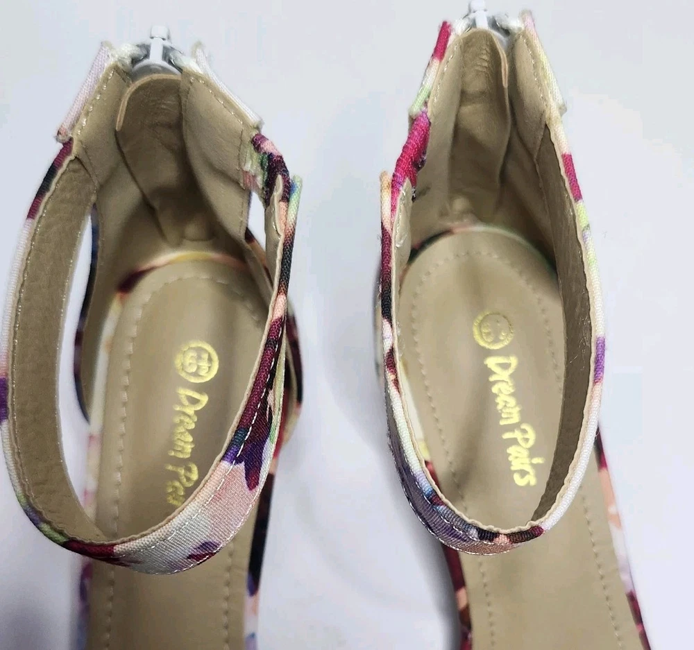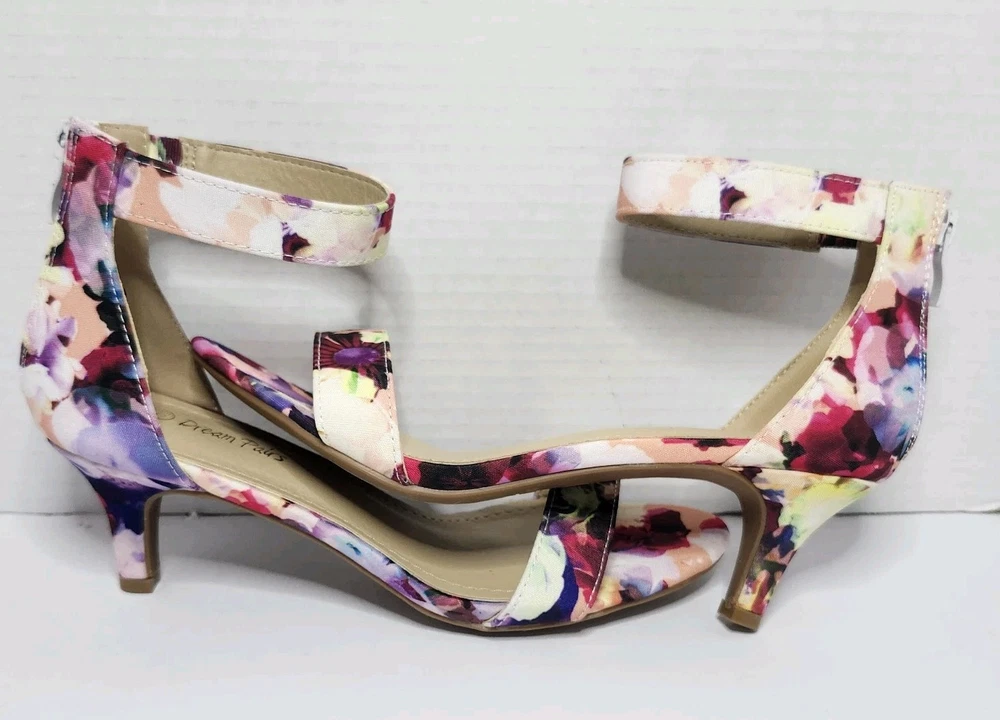 NEW DREAM PAIRS Floral Open Toe Ankle Strap Kitten Heels Size 6.5 Sandals