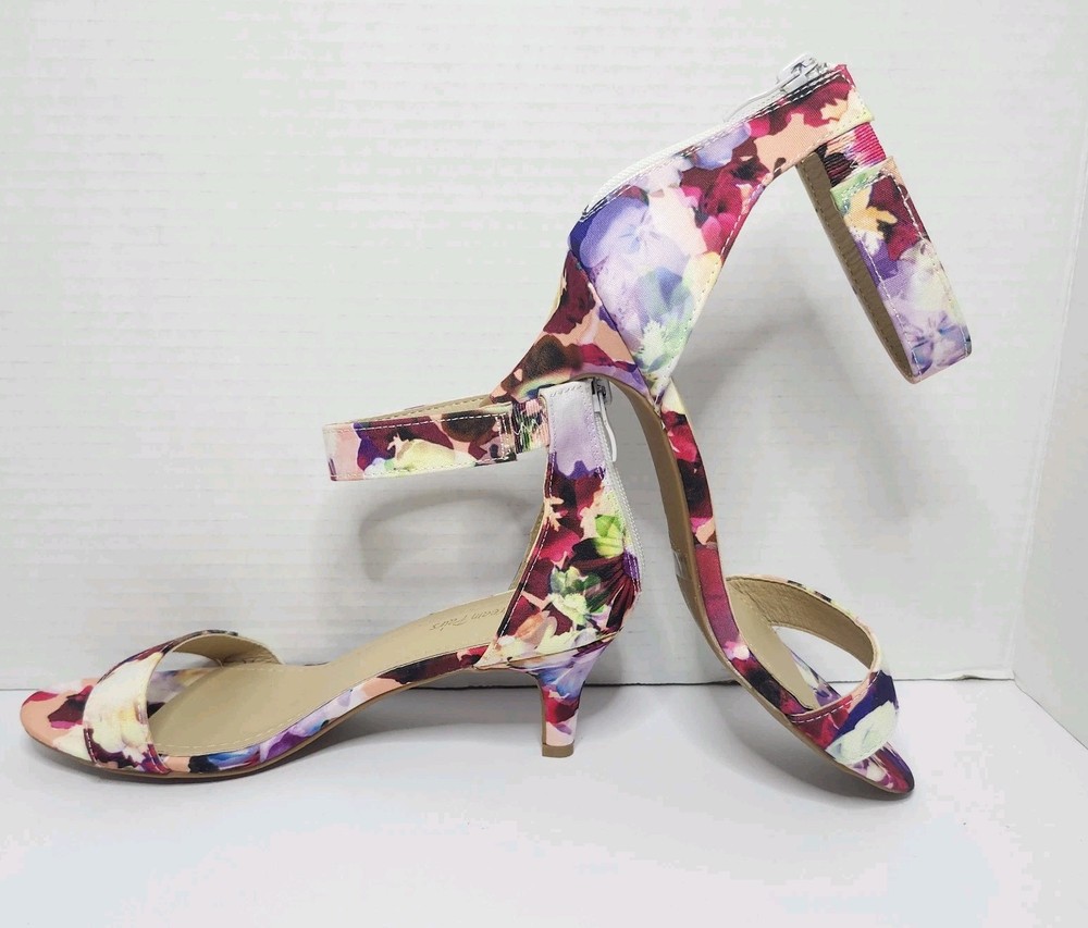 Elevate your footwear collection with the NEW DREAM PAIRS Floral Open Toe Ankle Strap Kitten Heels. These size 6.5 sandals boast a chic multicolor floral pattern that captures the essence of summer, perfect for weddings or formal events. The open-toe design paired with a delicate kitten heel offers a harmonious blend of elegance and comfort for all-day wear. Crafted with a fabric upper and a synthetic lining, these heels are designed to provide a snug fit with a stretch feature, ensuring comfort without compromising style. The non-slip rubber outsole and ancle strap accent enhance the shoe's practicality and aesthetic appeal. With their versatile nature, these heels are suitable for a range of occasions, from cocktail parties to formals.