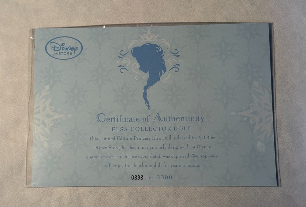 NEW Disney Store Frozen 17" Elsa Limited Edition Doll 838 of 2500