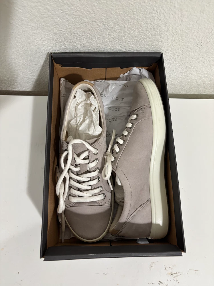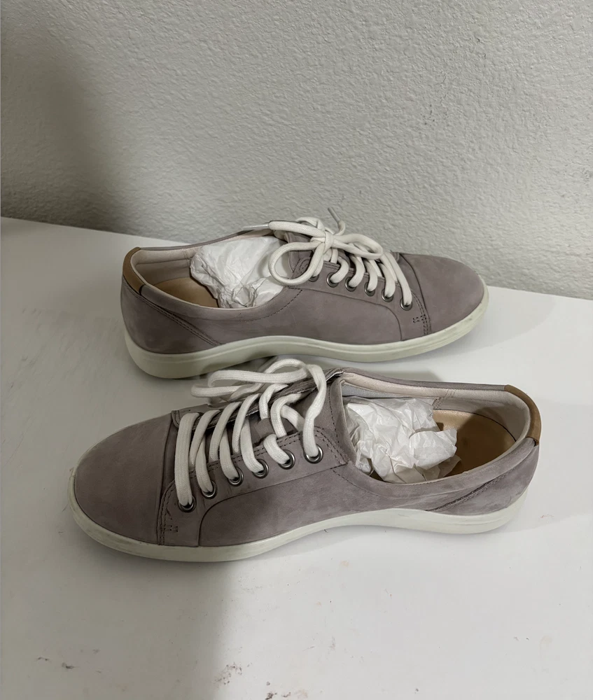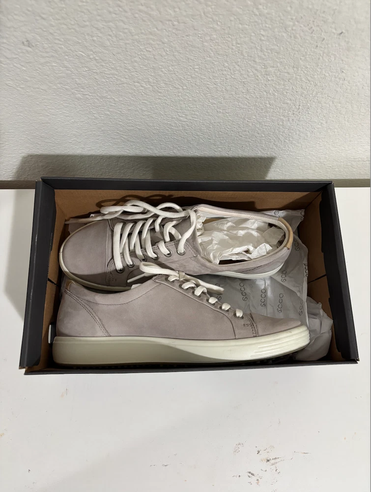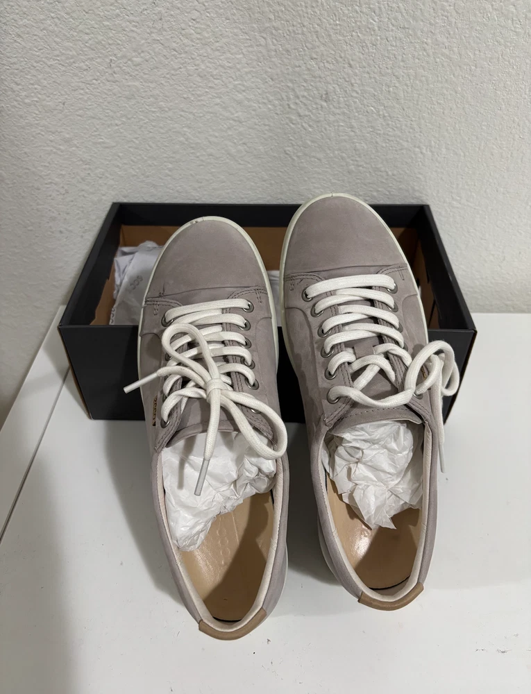 NEW ECCO Soft Shoes Women EU 39 Gray Grey Rose Leather Comfort Casual Sneakers