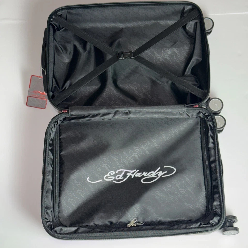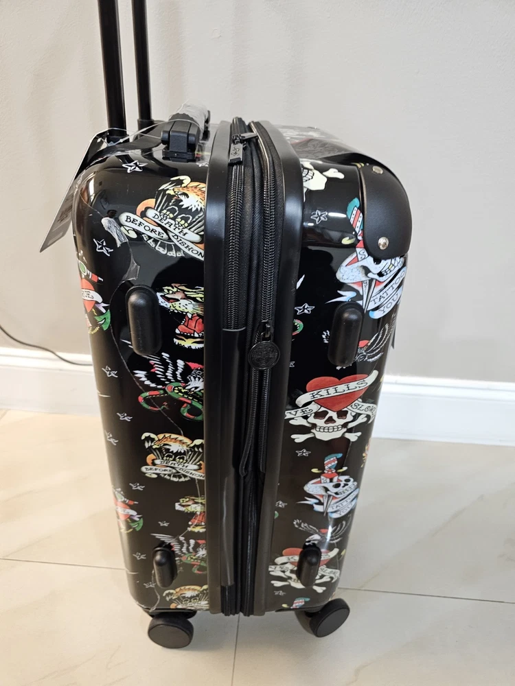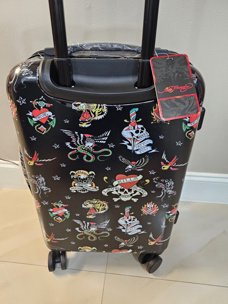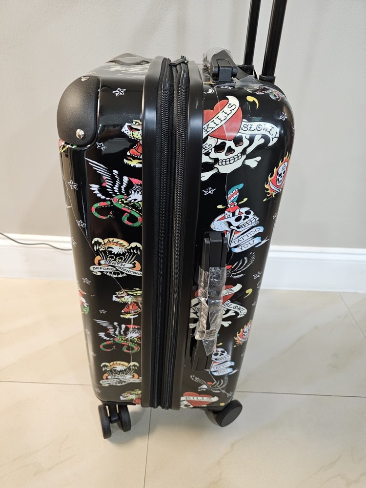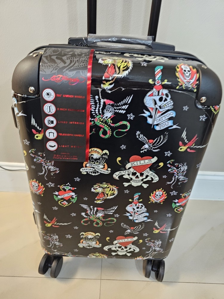 NEW Ed Hardy Carryon Hardside 20” Suitcase-Black-New York City-Tattoo-Travel