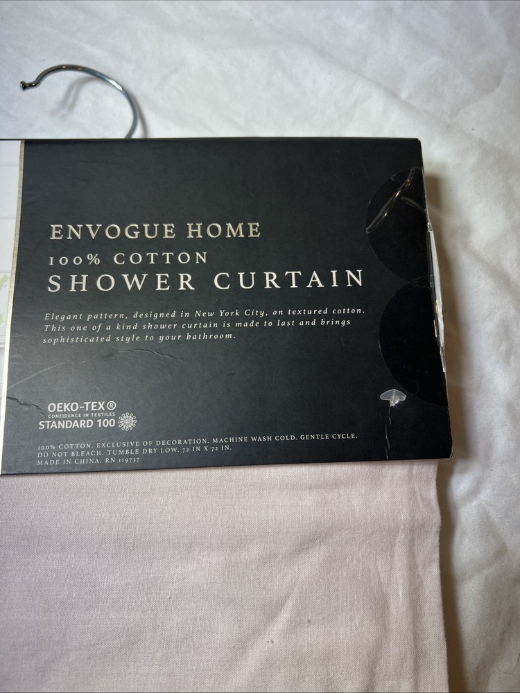 The NEW Envogue Home Shower Curtain is a stylish and practical addition to any bathroom. Made from 100% cotton fabric in a light pink color with a dotted pattern, this 72"x72" curtain is suitable for showers and bathtubs. The eyelet design adds a touch of elegance, while the machine washable feature makes it easy to keep clean and fresh. Perfect for creating a cozy and inviting atmosphere in your bathroom, this curtain from en Vogue is a must-have for your home.