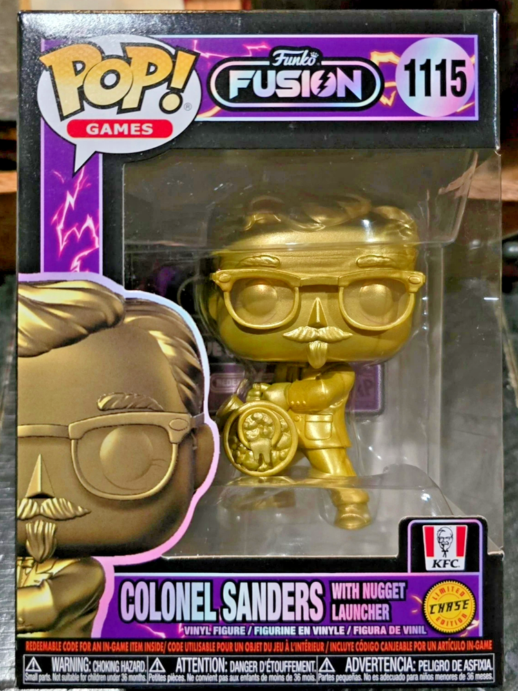 Welcome to our eBay store! After 20+ years of selling locally in north Georgia, we've expanded our business to online selling. Please let us know if you have any questions. All emails are answered within hours, and all orders will be shipped the next business day. Thanks for looking at our item! ------------------------------------------------------------------------------------------------------------------------ ------------------------------------------------------------------------------ A mysterious evil has arrived to take over your Funko Fusion Pop! collection! Team up with Colonel Sanders with Nugget Launcher to face this villainous foe and save the day! Bring your set to life when you add Colonel Sanders with to your KFC meal. This collectible includes a redeemable code for an in-game item for Funko Fusion video game. This Funko Fusion Colonel Sanders with Nugget Launcher Funko Pop! CHASE Vinyl Figure #1115 measures approximately 3 3/4-inches tall and comes packaged in a FREE PROTECTOR ! Track Page Views With Auctiva's Counter