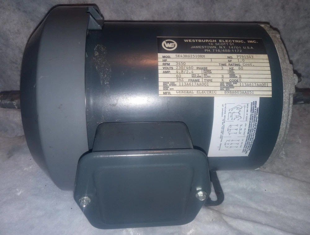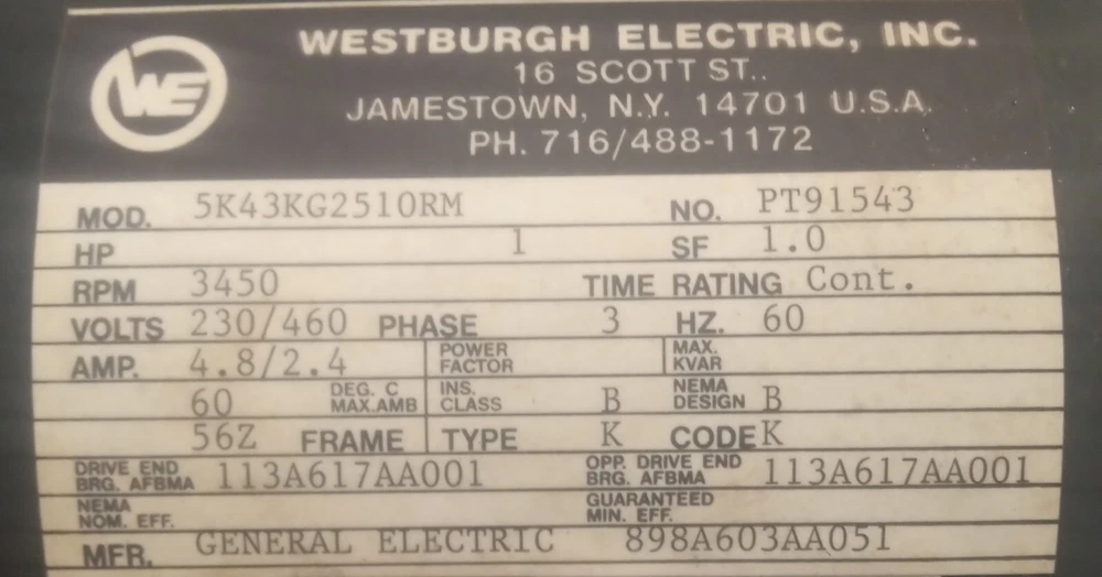AC Phase: Three Phase Service Factor: 1.00 Model: 5K43KG2510RM Current Type: AC Rated Load (HP): 1 Brand: general electric
