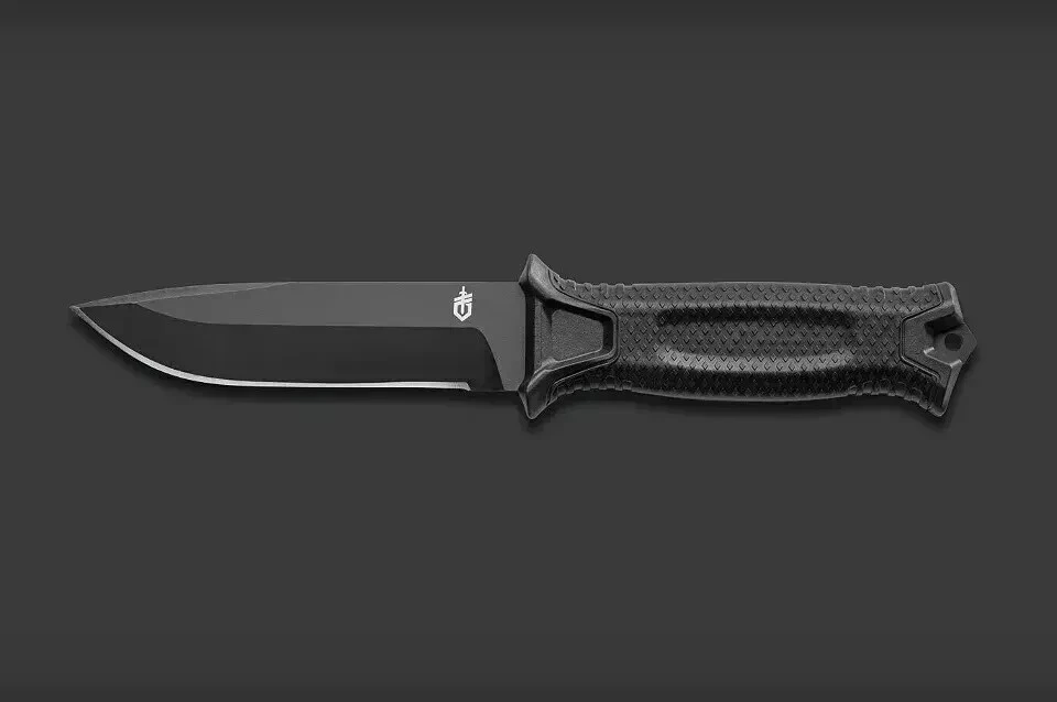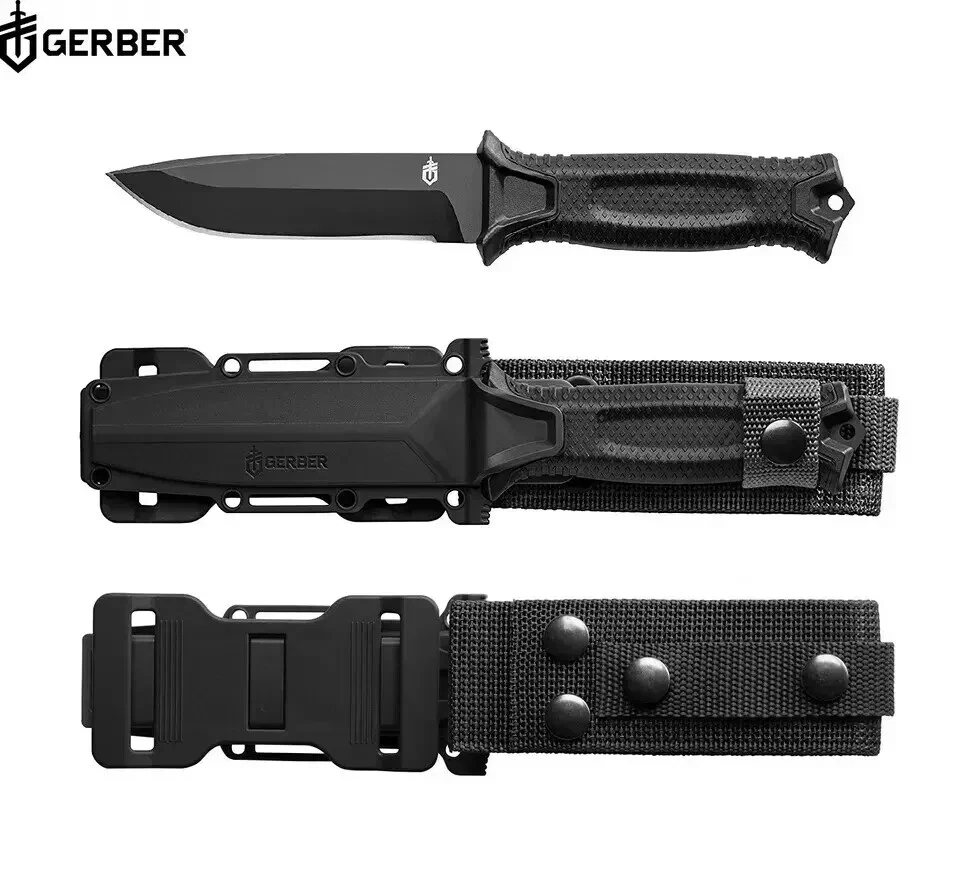 About this item description:: Genuine Gerber USA Made StrongArm Fixed Blade Plain Tactical Knife -Black US Stock Same day Dispatch 3,5 days delivery Gerber Drop point StrongArm fixed blade features 4.8-Inch long 420 high-carbon steel blade with Cerakote® coating for durability. This 9.8-Inch long knife has black rubberized diamond texture glass filled nylon handle for comfort and firm grip. Spike pommel with lanyard hole Full tang Webbing for secondary retention and drop-leg carry Detachable belt hoops for easy carrying Snap-in MOLLE clip Features: Material: 420 High Carbon Steel Finish: Black Cerakote® Coated Type: Drop Point Handle Material: Rubber Overmolded Glass Filled Nylon Handle Type: Diamond Textured Grip Overall Length: 9.8