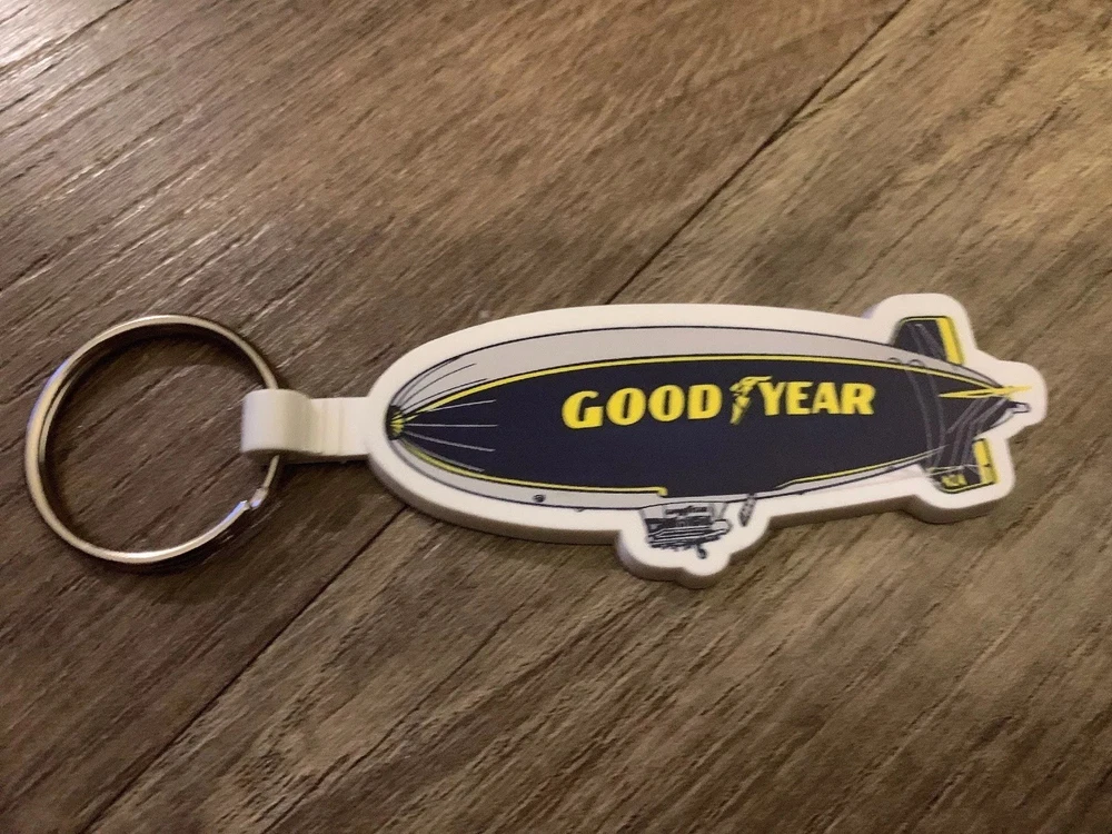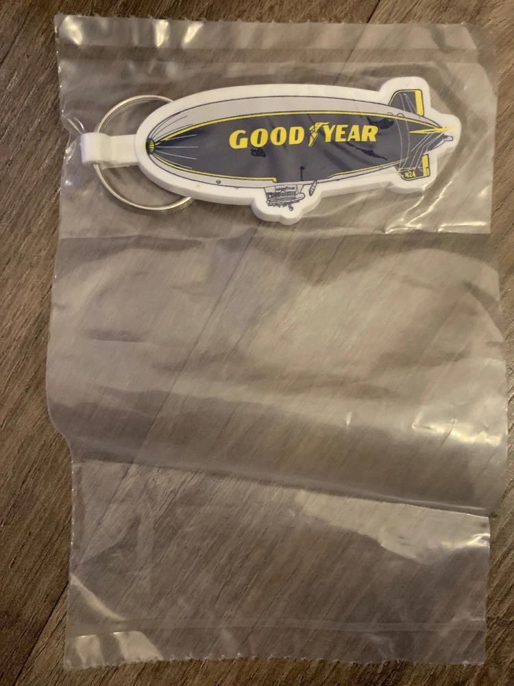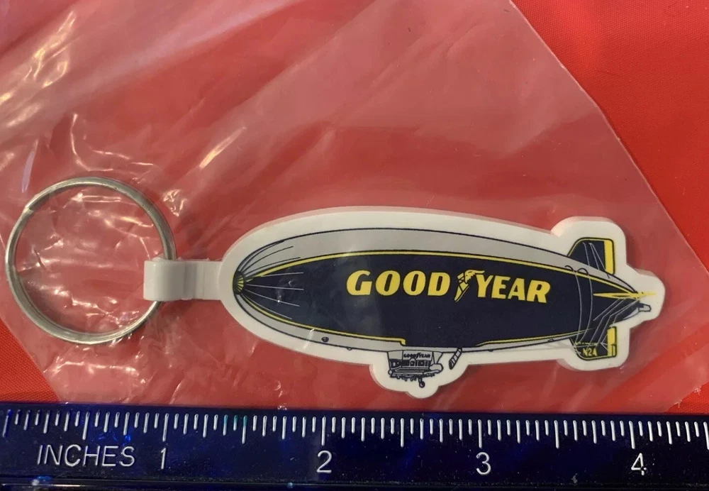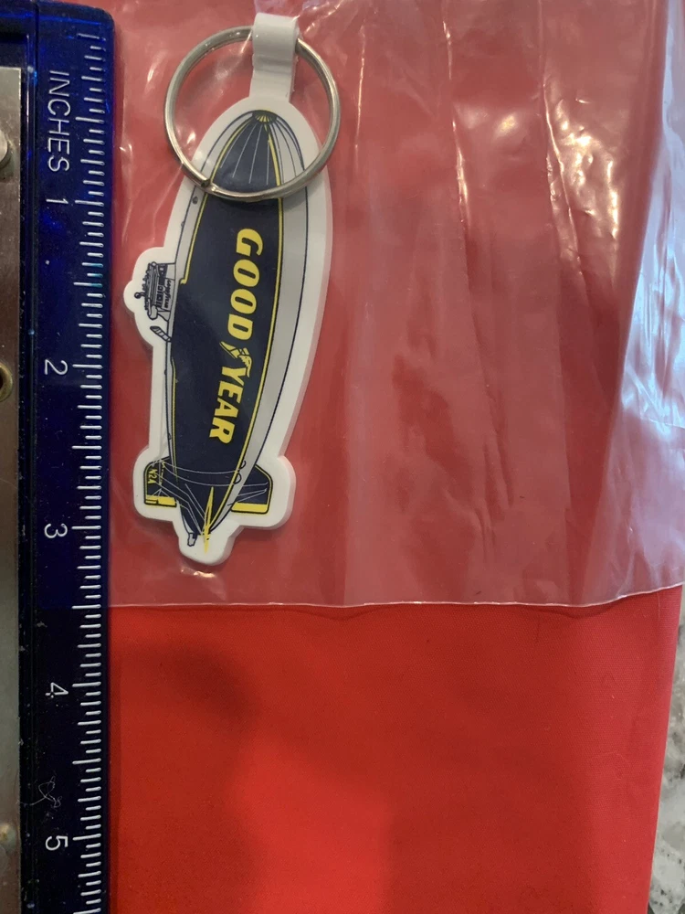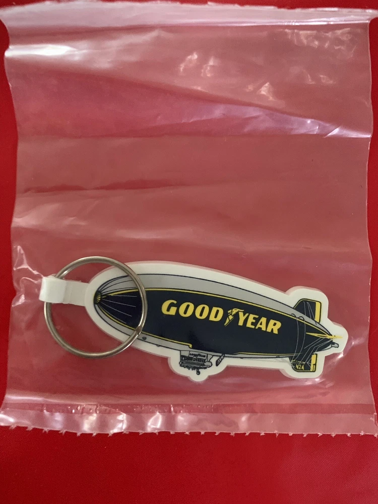 THIS IS FOR 1 NEW GOODYEAR BLIMP RUBBER KEYCHAIN KEY RINGS VINTAGE YELLOW WHITE BLUE Size 4”