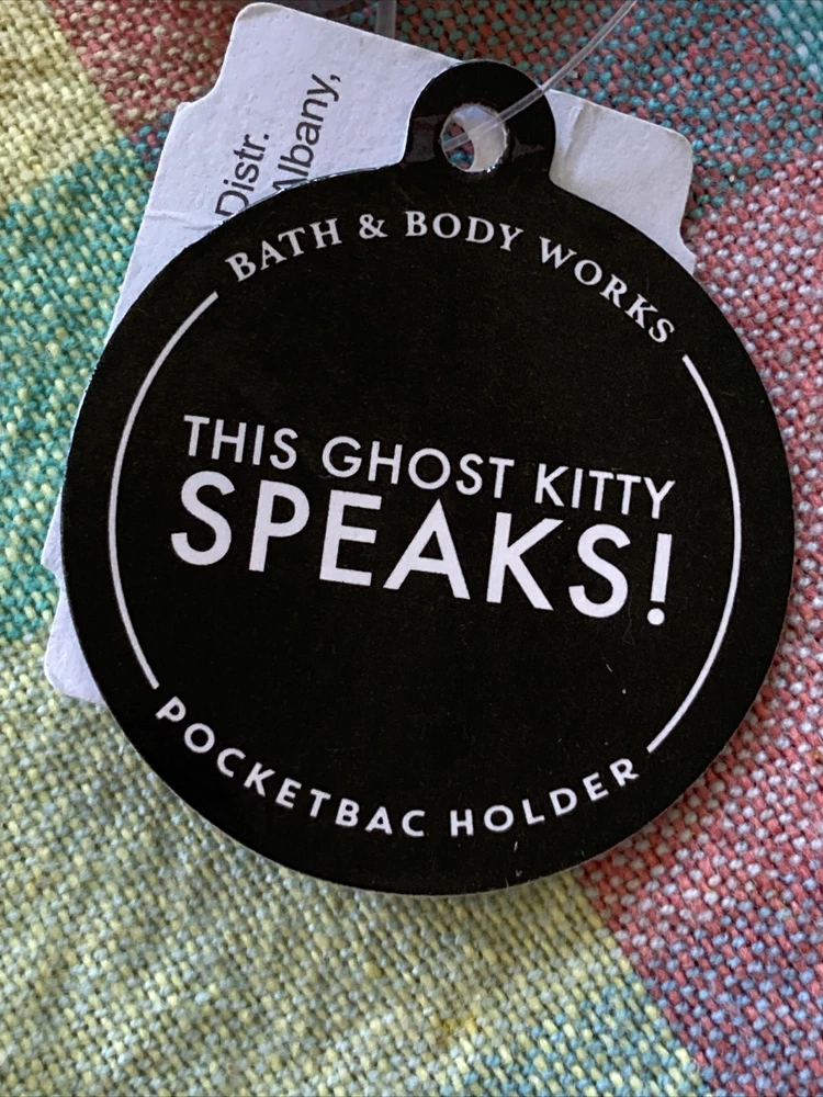 Up for grabs is this Glow-in-the-Dark TALKING GHOST KITTY CAT POCKETBAC HOLDER. NEW NEVER USED except for testing the sounds. Super cool! Sound is of kids saying “TRICK OR TREAT “ with a kitty meow at the end. All my items come from a smoke & gander free environment. I also combine shipping costs upon request. Check out my other HALLOWEEN ITEMS!
