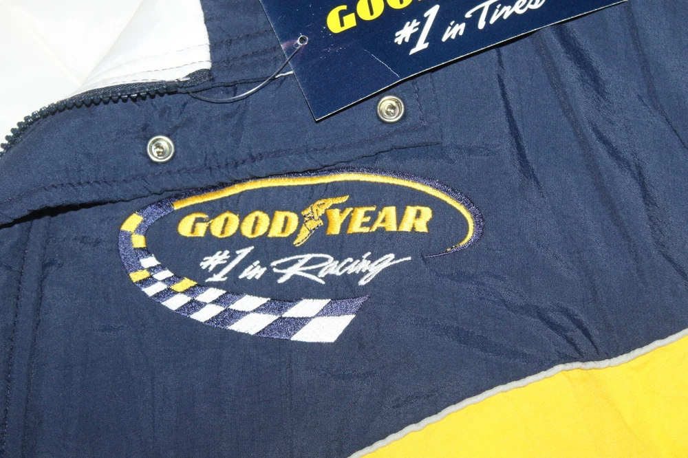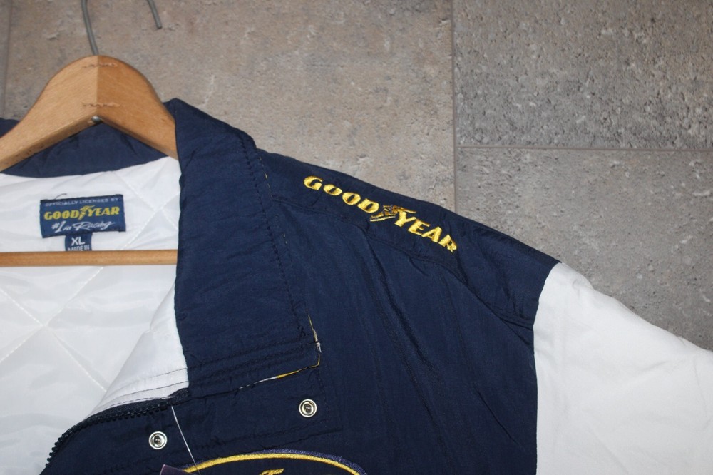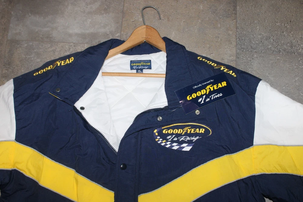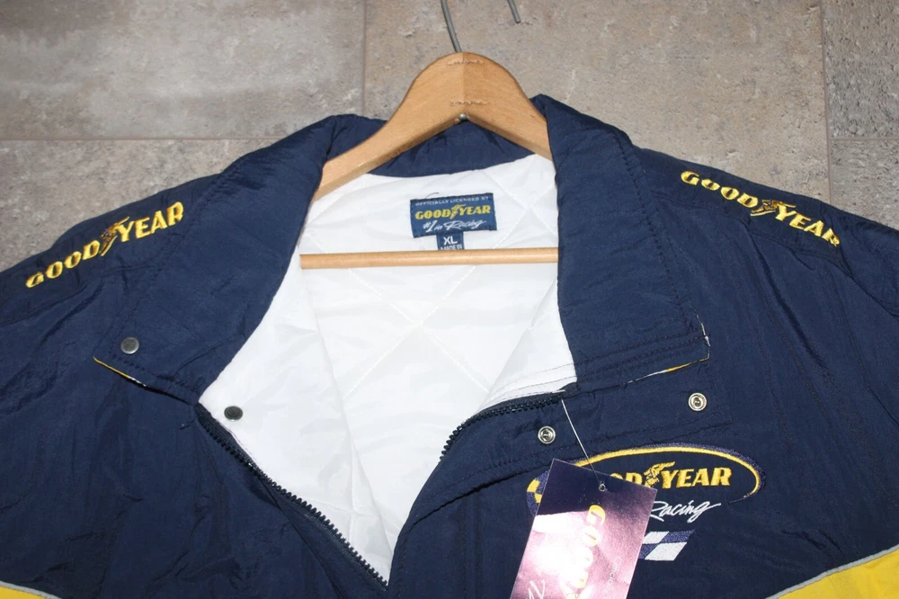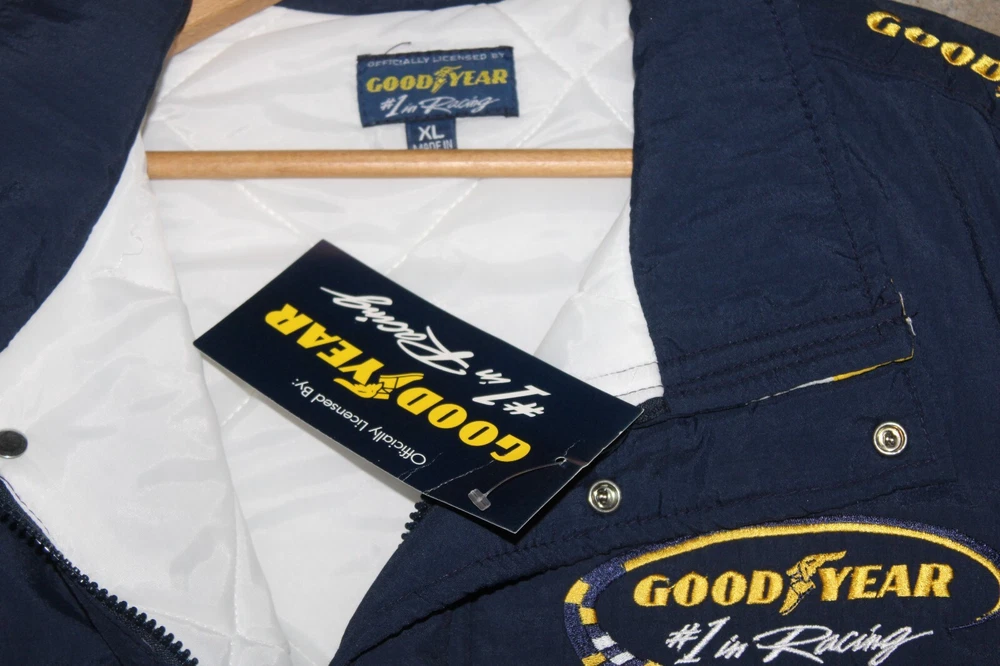 BRAND NEW Good Year NASCAR Racing Jacket Official Good Year Tire Bomber Coat Size: XL Features: quilted lining New old stock. Absolutely beautiful. Refer to pictures. PLEASE e-mail me with any questions or for additional pictures. FREE SHIPPING in the US. Thank you for your interest and have a great day.