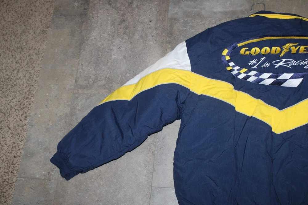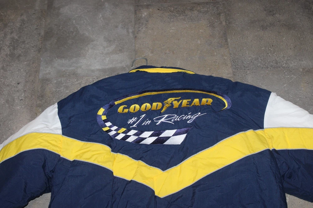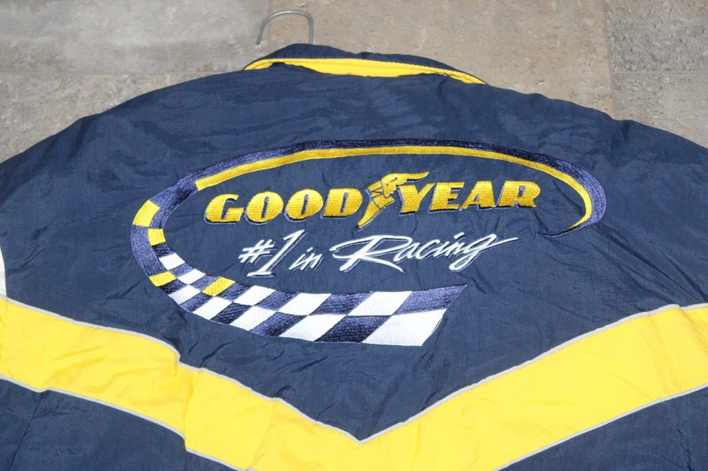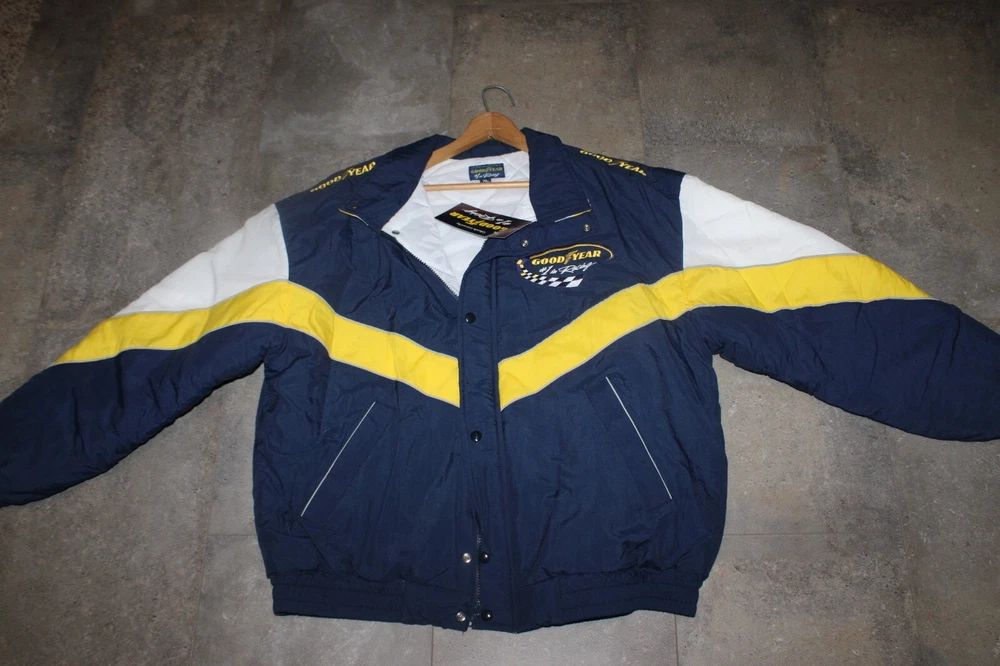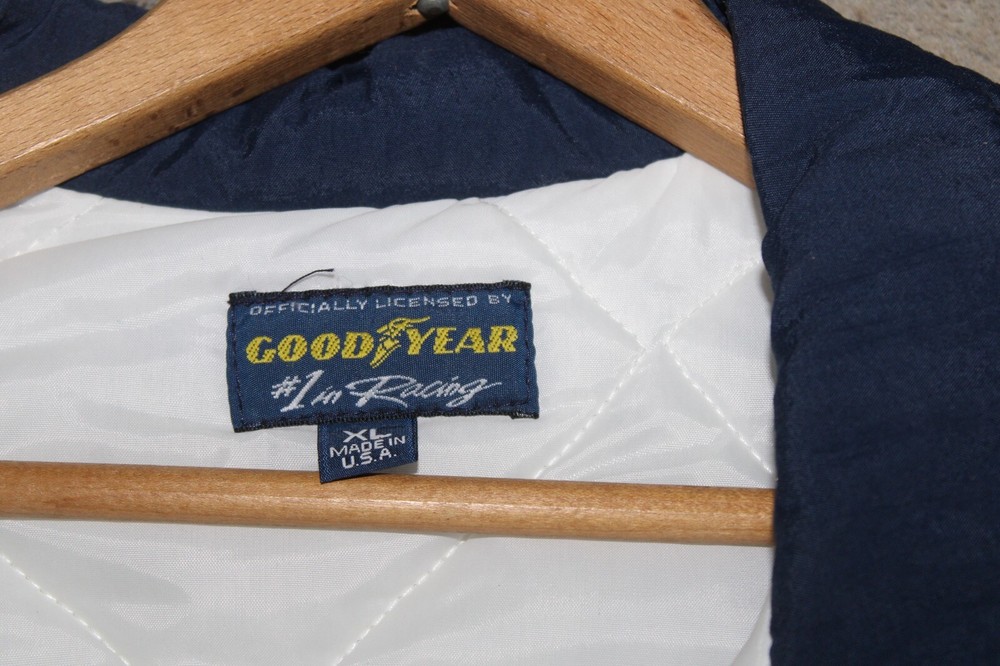 BRAND NEW Good Year NASCAR Racing Jacket Official Good Year Tire Bomber Coat Size: XL Features: quilted lining New old stock. Absolutely beautiful. Refer to pictures. PLEASE e-mail me with any questions or for additional pictures. FREE SHIPPING in the US. Thank you for your interest and have a great day.
