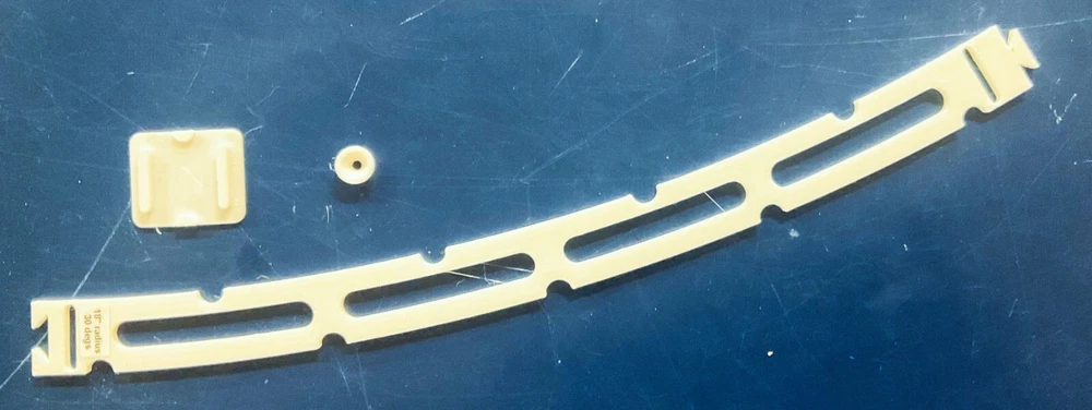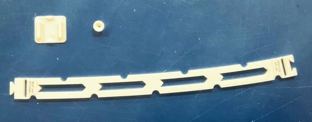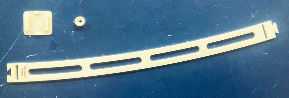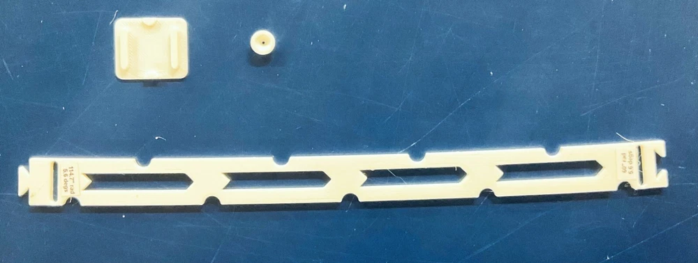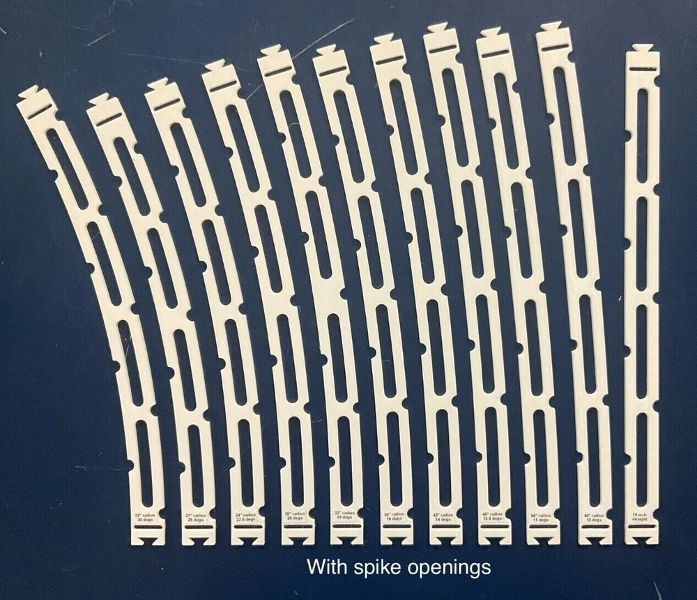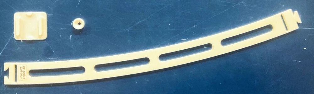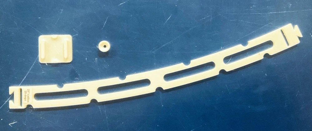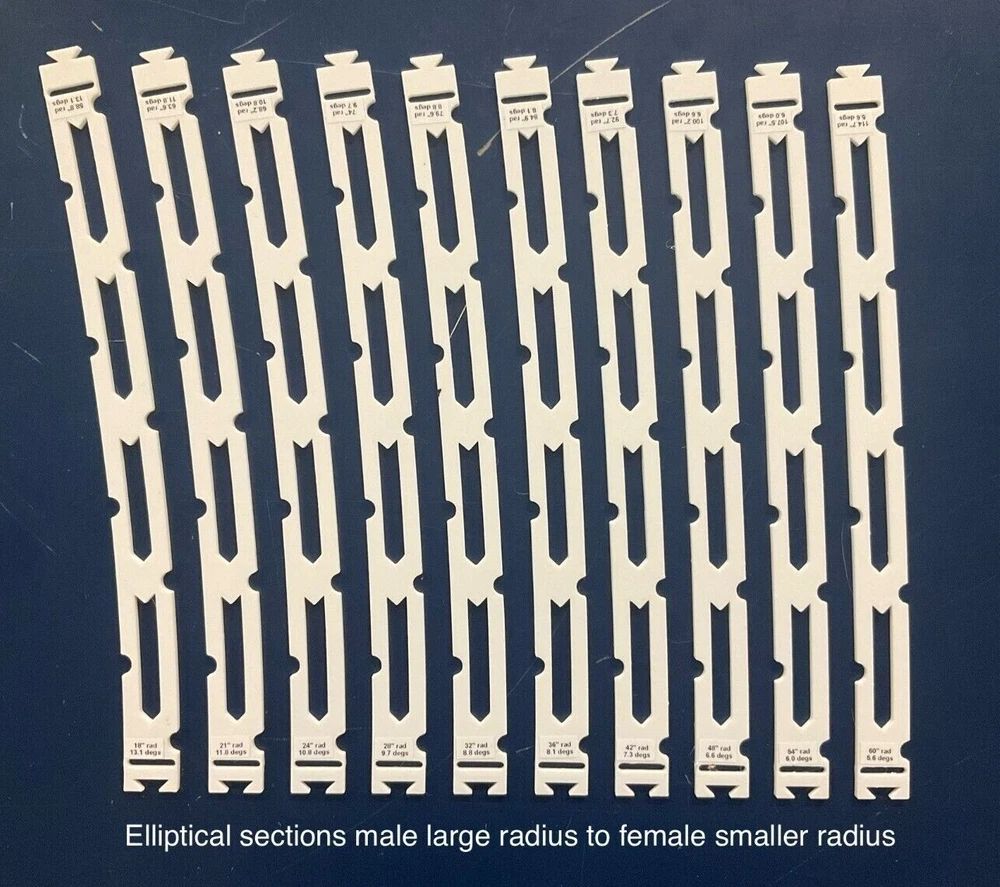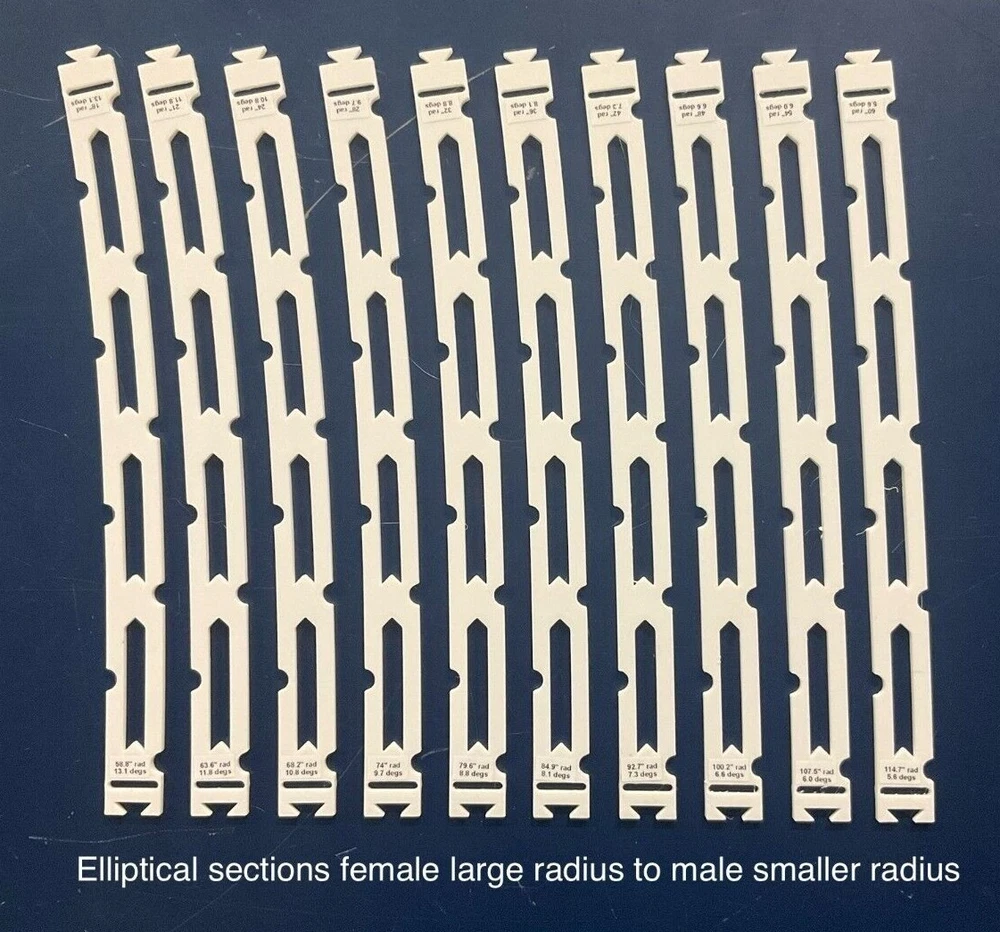 HO Track Placement Snap Template Sections for Laying HO Scale Track NOTE: If purchasing more than one section select "Add to cart" and when all sections have been selected, go to your cart and select "Request combined shipping" for an invoice with combined shipping cost. Request combined shipping - ke "to enable combined shipping costs. These Snap Templates help make the process of laying HO Scale track simpler and easier. They are designed to help ensure your track is laid smoothly and accurately. Whether you are a seasoned model train enthusiast or just starting out, these templates help facilitate placement of HO Scale track at an affordable price. Designed with attention to detail and precision, the track placement Snap Templates snap together by way of a unique dovetail joint locked in place with a connector, making the intended relationship between template sections more accurate to specific curvatures and angles. One connector is included with each Snap Template section. A large selection of curvatures are available including elliptical transition sections that enable smooth transition from a straight section of track to a specific radius of curvature circular arc. This smooth transition provides for a more prototypical scene as a locomotive enters the curve. Each Snap Template section also features center line slots for placing nails into ties, or, for scribing a track center line using a scribing stencil. One scribing stencil is included with each Snap Template section. Snap Template sections are also available with or without openings for hand laying rail spikes. No guarantees or warranties expressed or implied. Please review photos before purchasing. No returns or refunds. Contact the Seller if you have any questions or would like to see other specific curvatures offered. Thanks for looking!