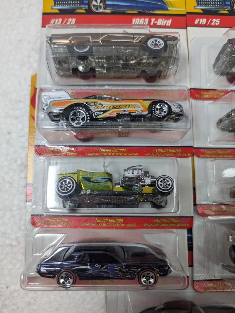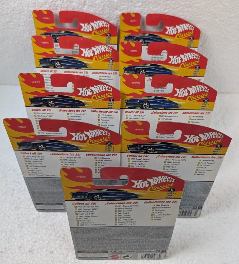 Explore the nostalgia with this Hot Wheels Classics Series 1 lot of 9 cars. Each 1:64 scale diecast vehicle is a replica of iconic Hot Wheels models, meticulously crafted to resemble their full-sized counterparts. The collection features an array of vehicles that celebrate the legacy of speed and design that has made Hot Wheels a household name among car enthusiasts and collectors alike. Every car in this lot comes in its original, unopened box, ensuring they remain pristine and collector-worthy. Whether for display or for the track, these Hot Wheels Classics are a must-have addition to any collection, embodying the spirit of innovation and performance that has defined the Hot Wheels brand since 2005.