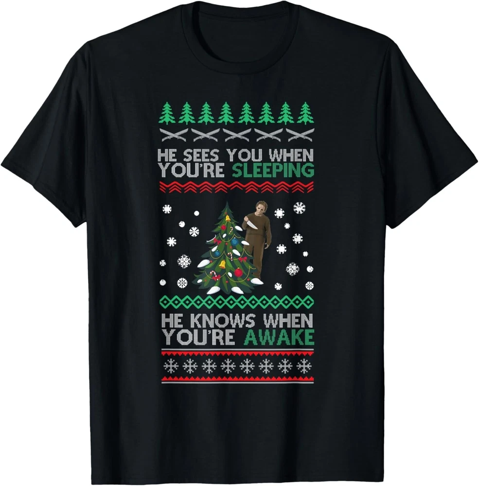 NEW He Sees You When You're Sleeping Horror Christmas Design Best T-Shirt S-3XL