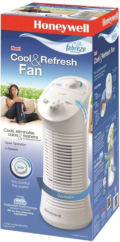 Color: White Type: Tower Fan Seller Notes: “Fan is brand new, but exterior box will show distress” MPN: HY-204 gtin13: 092926932008 UPC: 092926932008 Power Source: Electric Model: HY-204 Brand: Honeywell Features: Carry Handle, Quiet Operation, Manual Controls, 2-Speed, Febreeze Cartridge