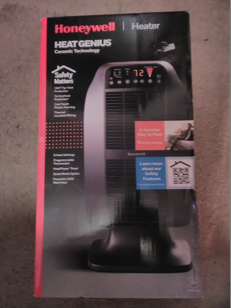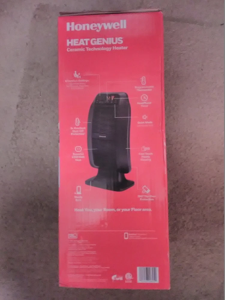 Model - HCE845B NO STOCK PHOTOS NEW Easy to use digital controls with LED display Programmable thermostat 6 heat setting options for customized comfort Tip-over protection automatically shuts the heater off if tipped in any direction Cool touch handle and housing Overheat protection High quality, heat resistant plastic Stable, sturdy base Personal Setting: Top only heating for comfort when seated or relaxing Room Setting: Total heating for whole room comfort Floor Setting: Bottom only heating to warm floor or cold feet Quiet Mode: A heat setting that combines gentle white noise with soothing warmth Provides a subtle background sound to sooth and relax NEW HeatPhase Timer - a phased 30 minute - 2 hour auto-off timer that adjusts heat down a level every 30 minutes until the heater turns off Original owner FREE shipping insurance included