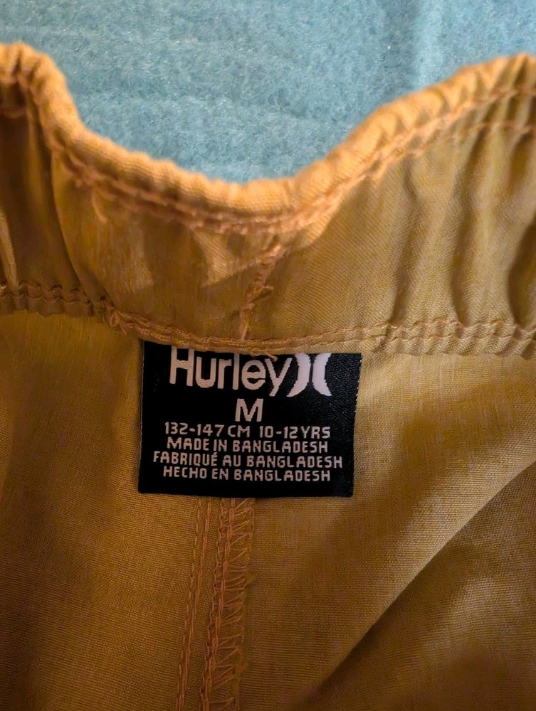 The NEW Hurley Boys Hybrid Short in Pebble Khaki Tan MSRP $35 is a stylish and versatile choice for active boys size Medium 10-12. Made of 100% polyester in a solid pebble tan these shorts feature a comfortable elastic waist and drawstring closure for a perfect fit. The athletic style shorts are machine washable and easy to care for, making them ideal for both activewear and casual occasions. The pebble pattern character adds a unique touch to these brown shorts, perfect for the summer, fall, and spring seasons.