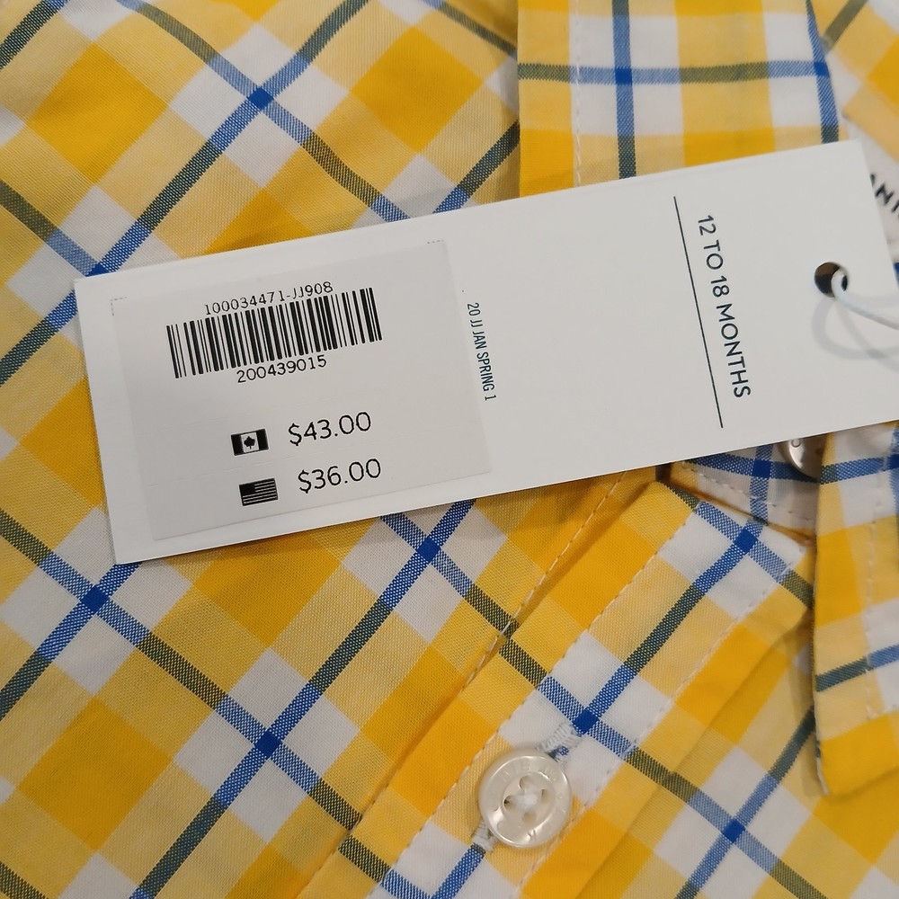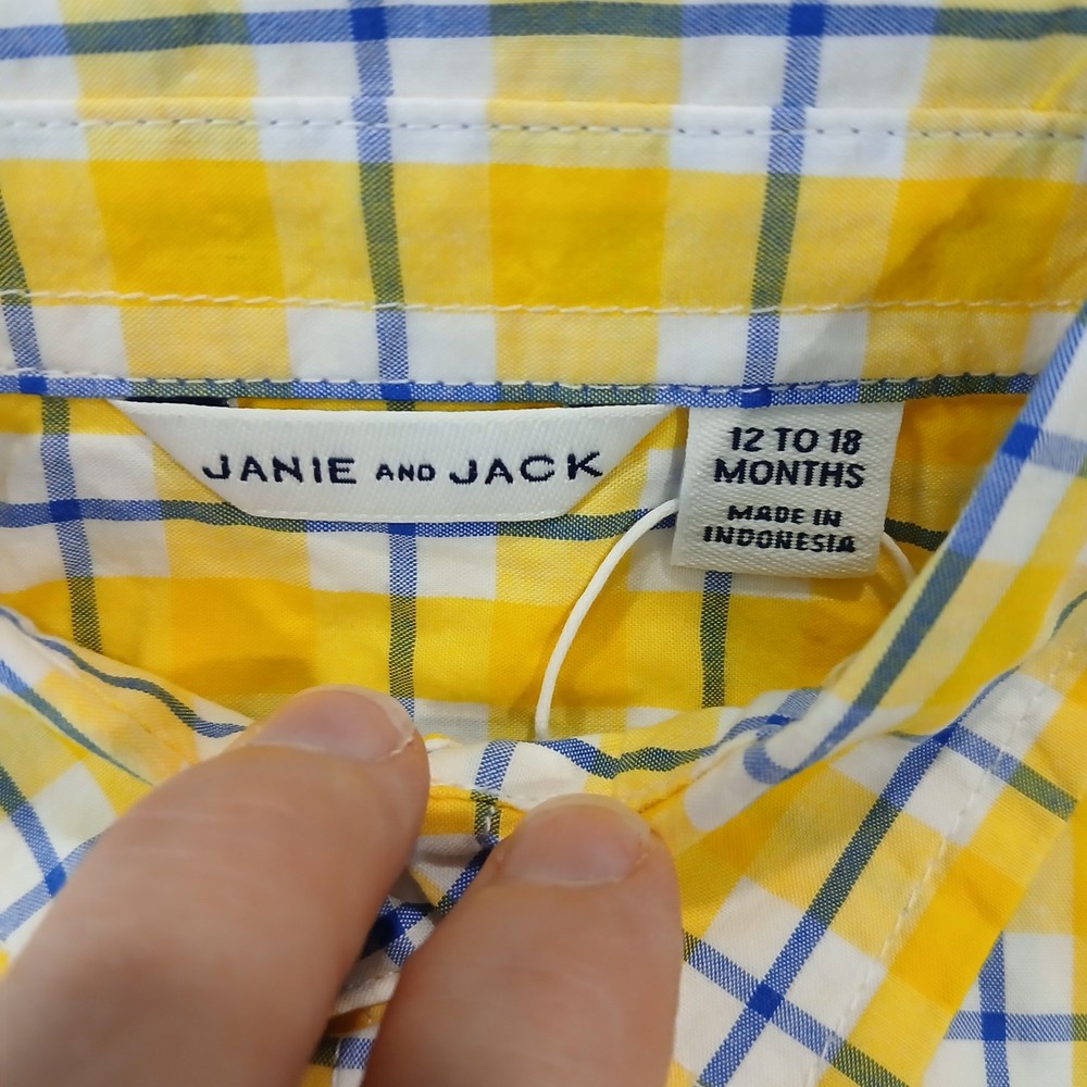 The Janie and Jack Boys Shirt in size 12-18 months is a stylish button-down garment in a blue and yellow plaid pattern. Made of 100% cotton with a down fabric type, this shirt is perfect for various occasions such as activewear, parties, weddings, casual outings, or formal events. Featuring long sleeves, a collared neckline, and a button closure, this shirt is machine washable and designed for a regular fit for little boys. Perfect for all seasons, this Janie and Jack shirt adds a touch of sophistication to any young boy's wardrobe. 100% Satisfaction Guaranteed! All Reasonable Offers Accepted! *NonSmoking Home