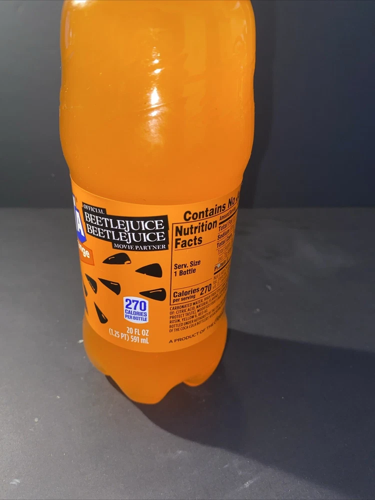 Introducing the limited edition Beetlejuice Movie Jenna Ortega Orange Fanta Soda 20oz Bottle! This collectible item is a must-have for fans of the iconic movie and soda enthusiasts alike. The bottle features a vibrant orange color with the classic Fanta logo and a unique design inspired by the film. Created in the United States in 2024, this original piece of merchandise is perfect for adding to your collection or giving as a gift. Whether you're a fan of the Beetlejuice franchise or simply love collecting unique soda memorabilia, this limited edition bottle is sure to impress. Don't miss out on the chance to own a piece of movie history!