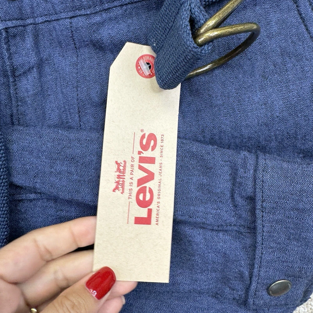 NWT Levis Linen Blend Snap Cargo Shorts Mens Size 34 Blue Belted Falls Below Knee. Condition is New with Tags. Shipped Standard. See Photos With Measurements.