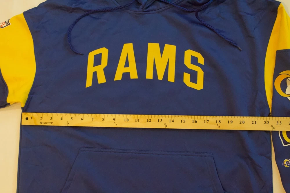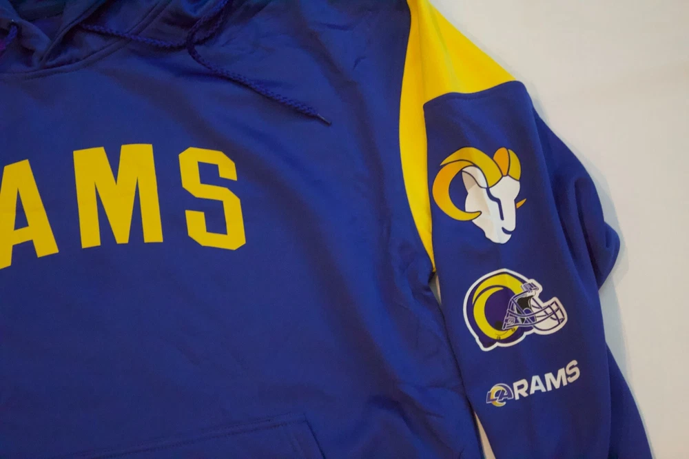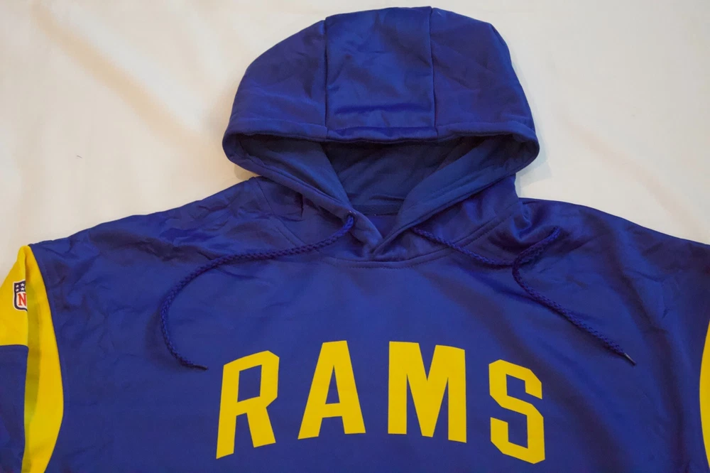 NEW Los Angeles Rams Blue Hoodie Sweatshirt Polyester Size Large Men's Size Large Shipped through USPS (Tracking Provided) Please feel free to ask any questions Vexium25 is an outlet for Jerseys, Fan Gear, Retro Video Games, CDs, Vinyls, and More! Check out our other items and bundle to save on shipping
