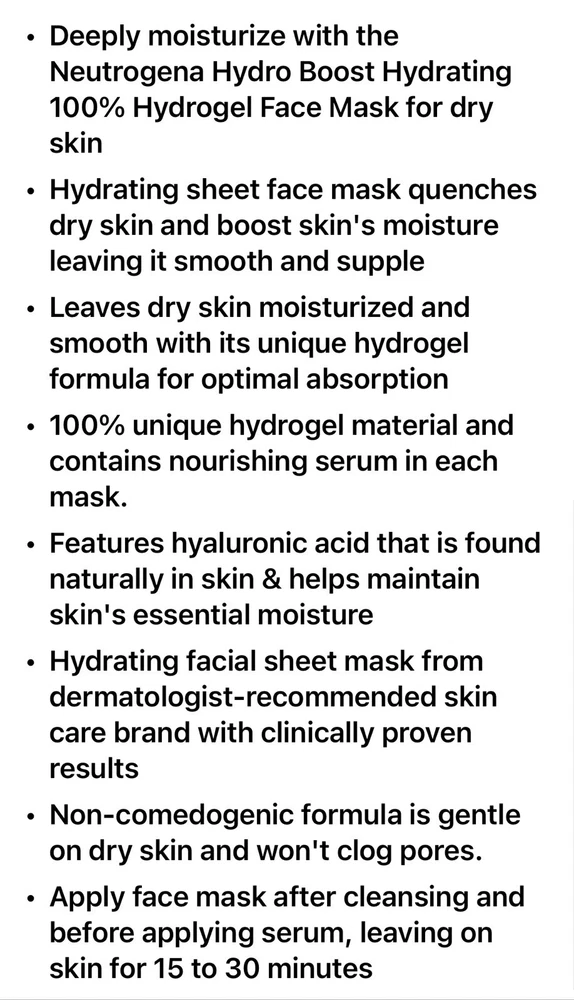 NEW-Never Opened (Lot of 17) Includes: (17) Individually Packaged NEUTROGENA Hydro Boost Hydrating 100% Hydrogel Masks with Hyaluronic Acid (1.0 oz. each). FREE PRIORITY SHIPPING! Please see pics for more details 😁