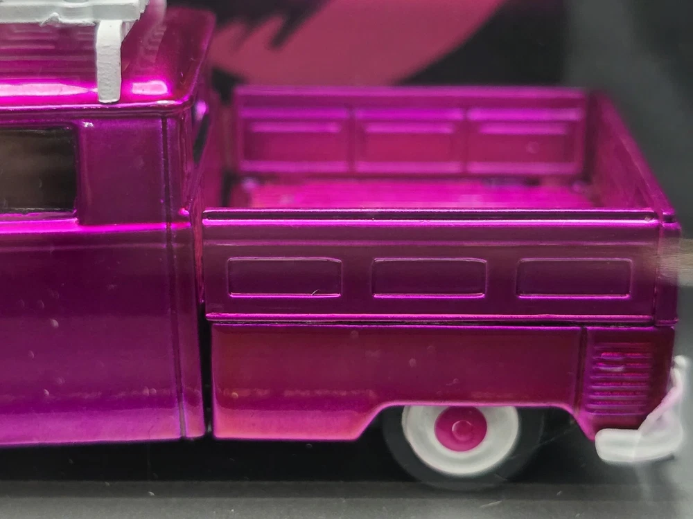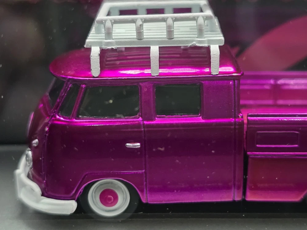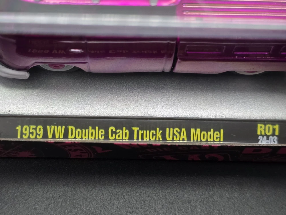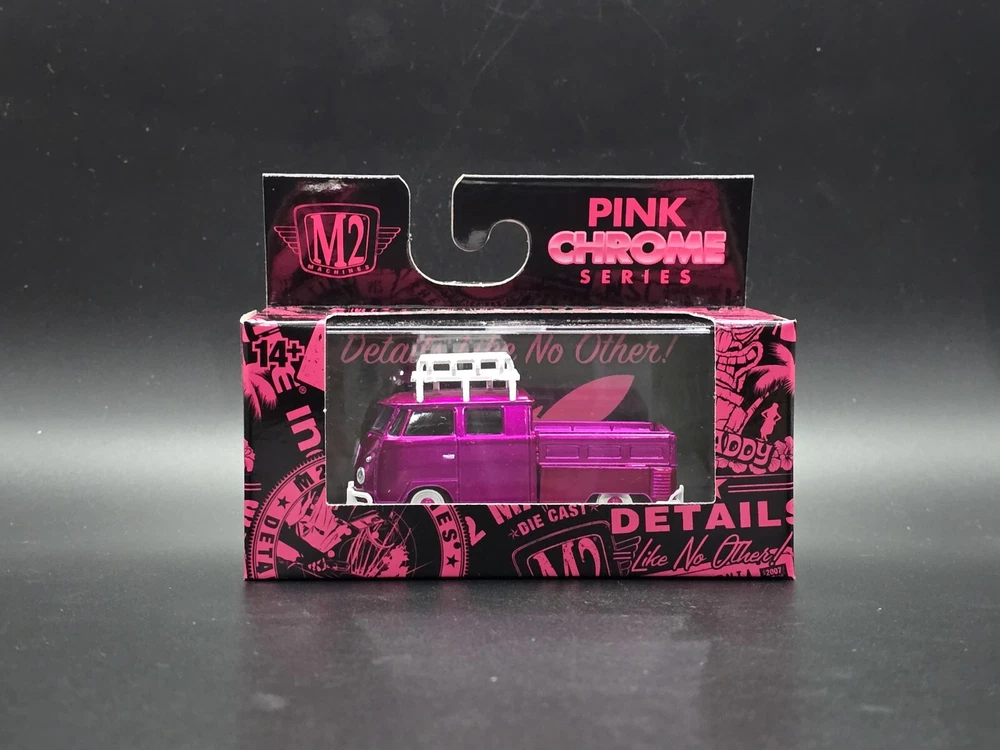 This is a brand new M2 Machines Pink Chrome Series 1959 VW Double Cab Truck USA Model. This limited edition truck comes with a special case and stand, and has never been opened. The truck is made of high quality diecast material and features a beautiful pink chrome finish. It is a must-have for any Volkswagen or truck collector, and would make a great addition to any collection. The truck is a scale 1:64 and represents the Pink Chrome Series. The truck's year of manufacture is 2024 and it is suitable for both boys and girls.