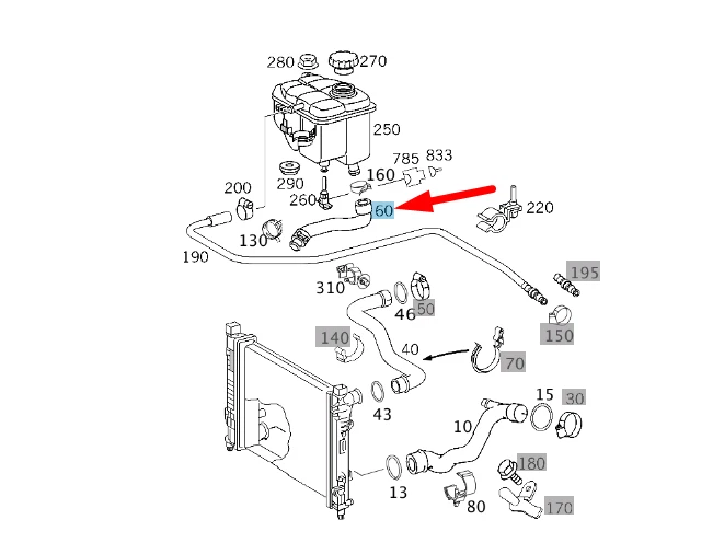 NEW MERCEDES-BENZ CLK C209 AMG EXPANSION TANK BOTTOM HOSE A2095000275 ORIGINAL