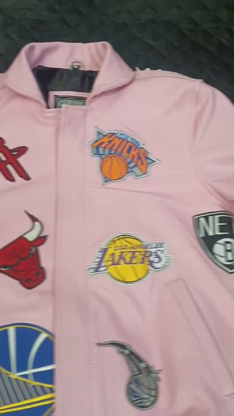 Comes as Pictured. This Men's Bomber Jacket is handmade from genuine cowhide leather, featuring a snap closure and varsity style design. The jacket is accented with a logo, has a spread collar, and is designed for all seasons, making it perfect for travel and casual occasions. The mid-length jacket is available in sizes XXS to 5XL and comes in a stylish pink color. Made in Pakistan, this jacket is suitable for outdoor activities like riding, walking, and cycling, and is part of the Made & Crafted product line for high-quality craftsmanship.