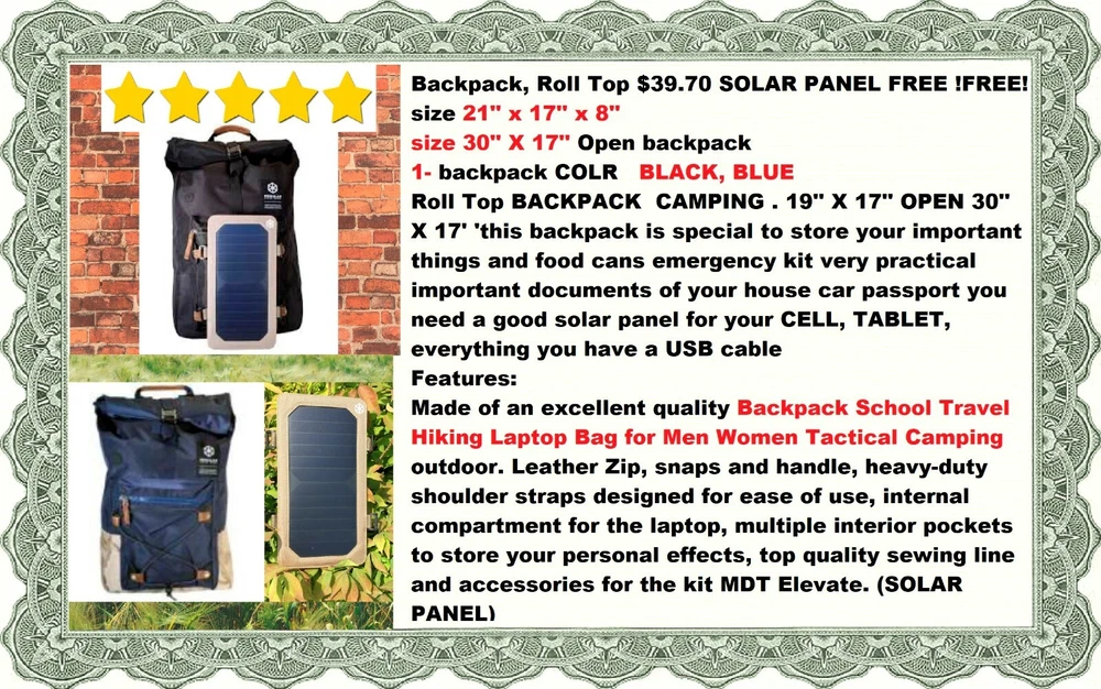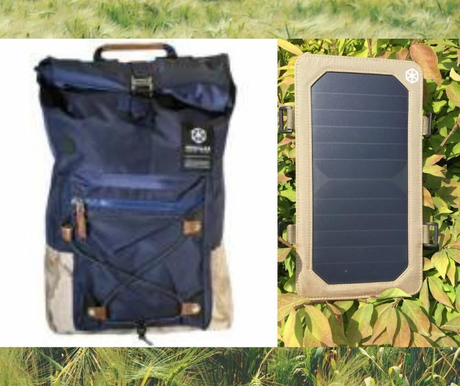 blue backpack beige solar panel