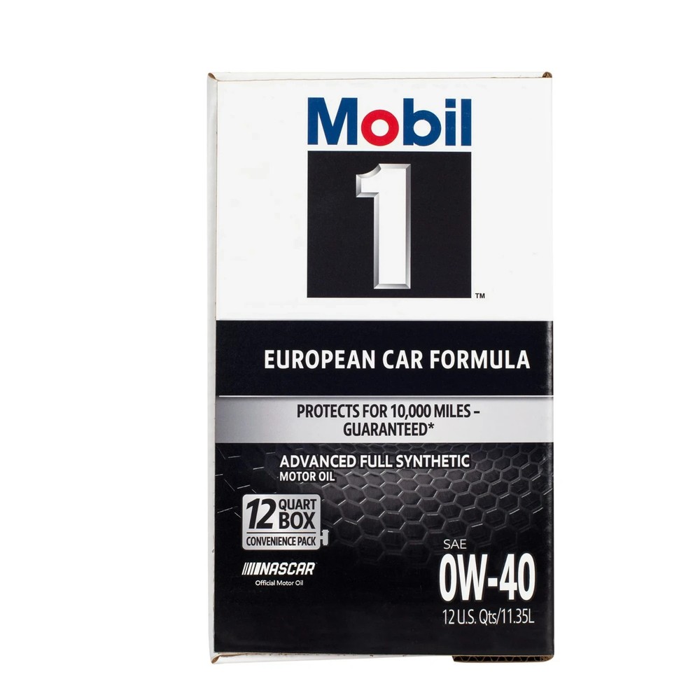 Mobil 1 FS European Car Formula 0W-40 helps to extend engine life, even in severe conditions, and protects critical engine parts for up to 10,000 miles between oil changes*. Its uniform synthetic oil molecules reduce friction, helping to prevent deposits and sludge buildup. This technologically advanced formulation provides excellent internal engine heat protection (up to 500 degrees Fahrenheit), and low-temperature protection (to -40 degrees Fahrenheit), supporting quick cold-weather starting and ultra-fast protection. Same oil. Less waste. Mobil 1 12 quart convenience pack (bag in box) uses 87% less plastic and is manufactured in a zero waste to landfill facility. Mobil 1 FS European Car Formula 0W-40 also helps control oxidation to prevent oil breakdown. Approved for many Mercedes-Benz, VW, Audi and Porsche vehicles, this formula provides excellent turbocharged engine protection. Mobil 1 is America’s leading synthetic motor oil brand at retail**, recommended by car builders and experienced mechanics, and is the Official Motor Oil of NASCAR Mobil 1 FS European Car Formula full synthetic motor oil 0W-40 helps to extend engine life even in severe conditions Helps to control oxidation to prevent oil breakdown and maintain excellent viscosity for up to 10,000 miles between oil changes* Provides outstanding engine wear protection and performance with uniform synthetic oil molecules for better friction reduction Keeps your engine running like new by working to prevent damaging deposits and sludge buildup Provides excellent internal engine heat protection (up to 500 degrees F) and low temperature protection (up to -40 degrees F) Motor oil type Full Synthetic Motor Oils Motor oil viscosity 0W - 40 Material Synthetic Size 12 qt Has written warranty Yes - Warranty URL Piece count 12 Compatible cars Mercedes-Benz|Vw|Audi|Porsche Volume capacity 384 fl oz Brand Mobil 1 Diesel fuel compatible N Has high mileage additives N Vehicle make Mercedes-Benz|Vw|Audi|Porsche