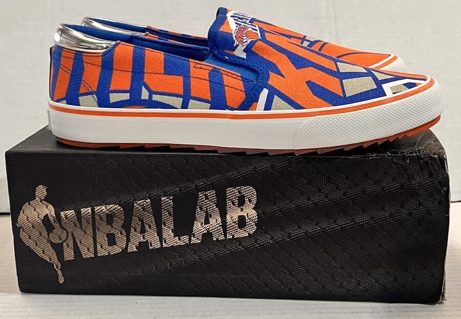 NEW New York Knicks Canvas Slip-On Mens NBA Lab Knicks The Slip NIB Size 10 Includes 1 new pair of New York Knicks Canvas Slip-On Mens NBA Lab Knicks The Slip NIB Size 10 Shoes are brand new, with original box included. Box has minor cosmetic damage and is slightly dirty. Please see photos to see box condition. Feel free to message us with any further questions. We are available Monday-Friday 9-4 est. orders are shipped promptly on the next available business day after purchase. We have a 30 day return policy for all orders. All our shoe listings come with free shipping!